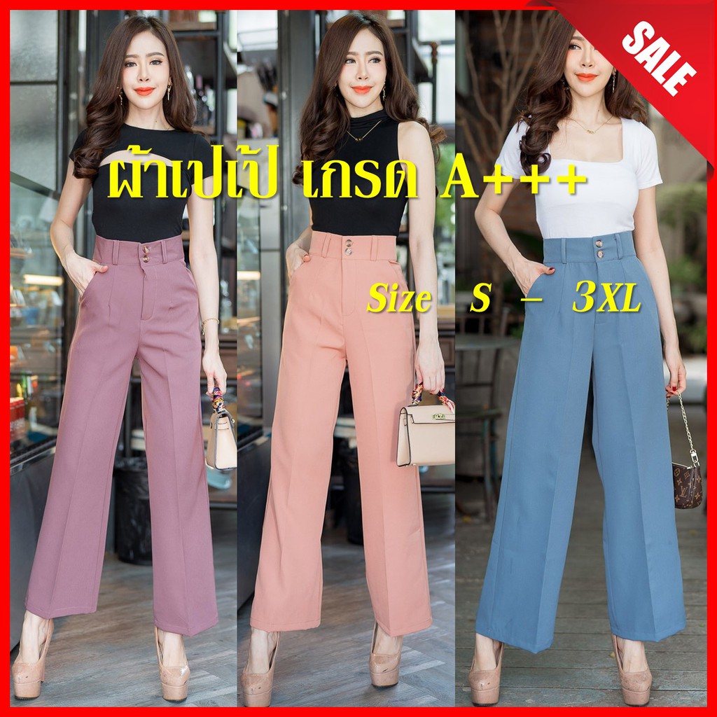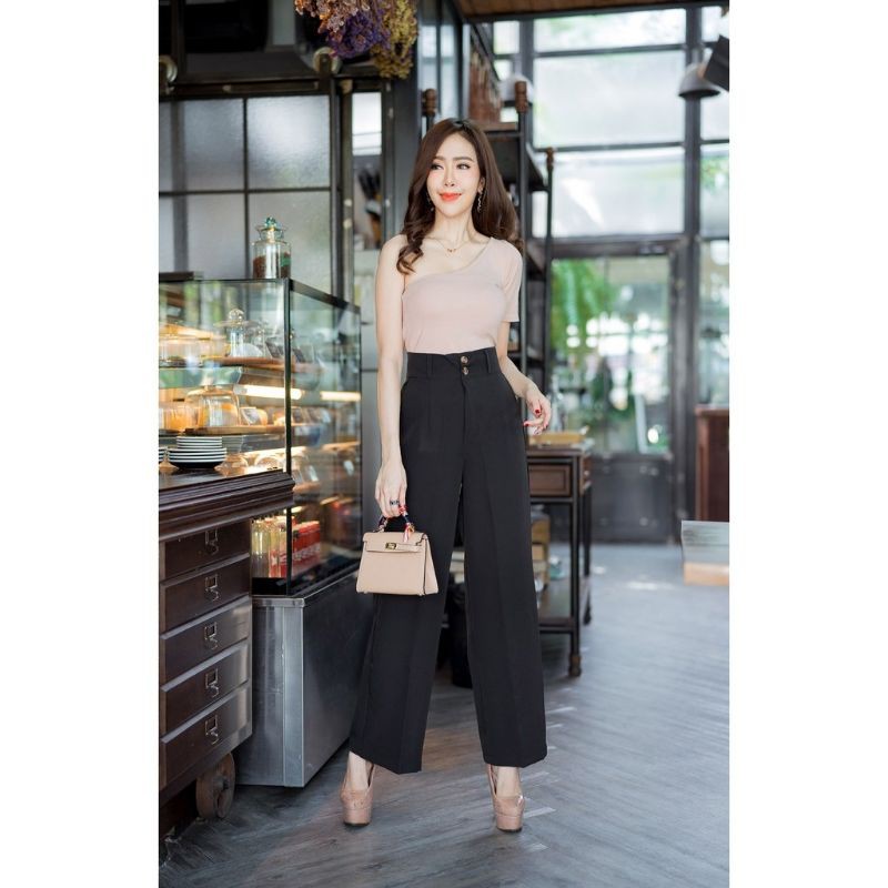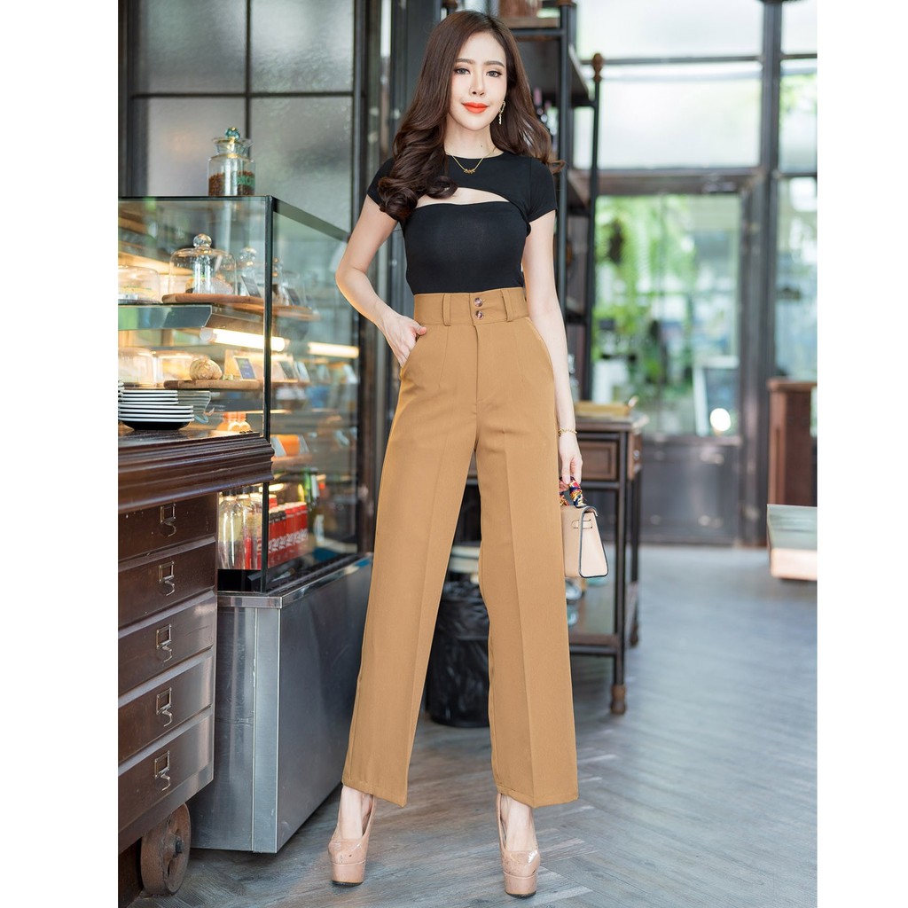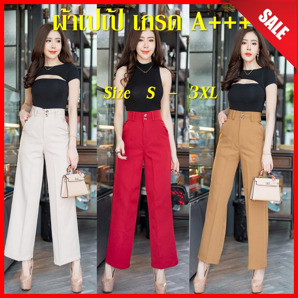 🔥🔥New!!GS01🔥 กางเกงเอวสูง ทรงขากระบอกใหญ่ ผ้าเปเป้เกรดเอ ขายาวซิปหน้า กระดุม2เม็ด มีหูเข็มขัด ใส่ทำงาน