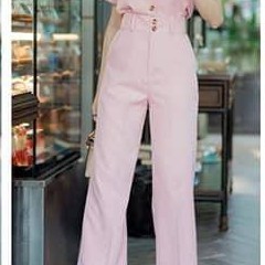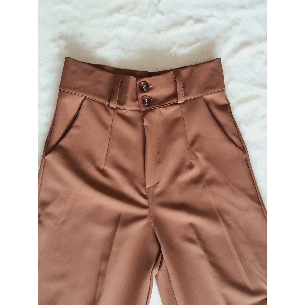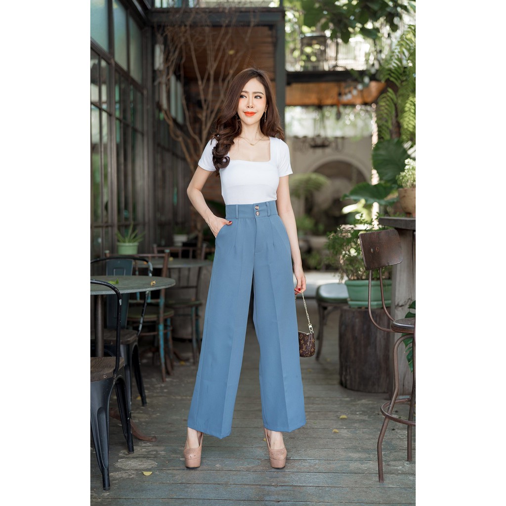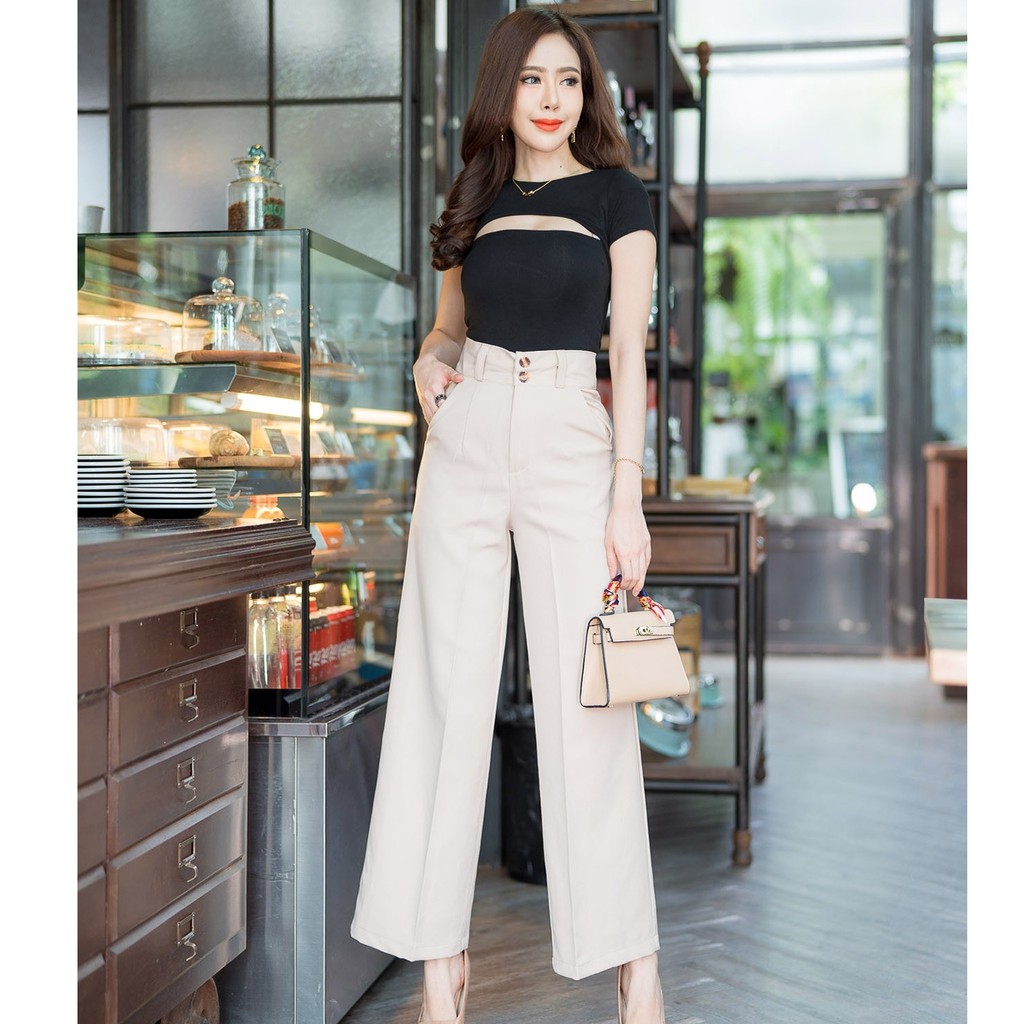 🔥🔥New!!GS01🔥 กางเกงเอวสูง ทรงขากระบอกใหญ่ ผ้าเปเป้เกรดเอ ขายาวซิปหน้า กระดุม2เม็ด มีหูเข็มขัด ใส่ทำงาน