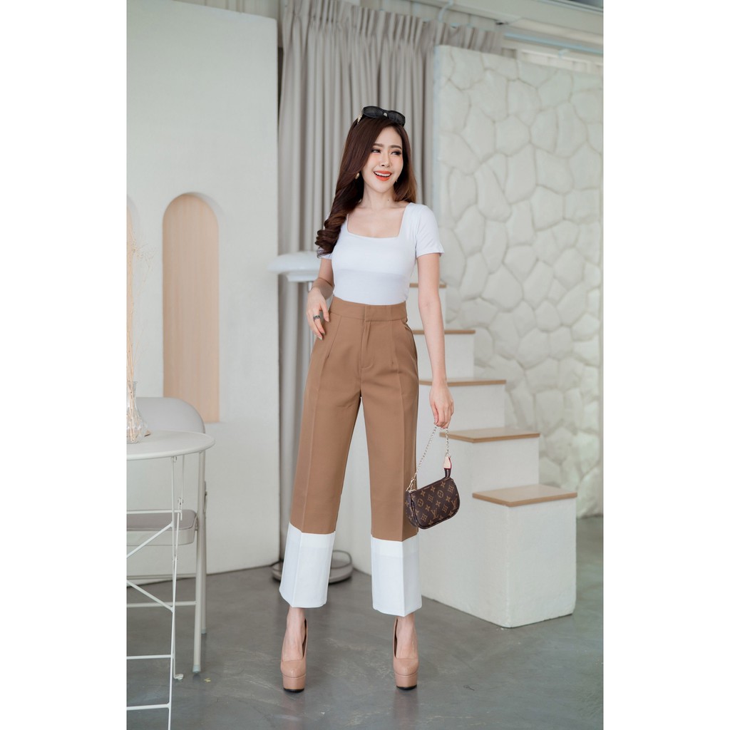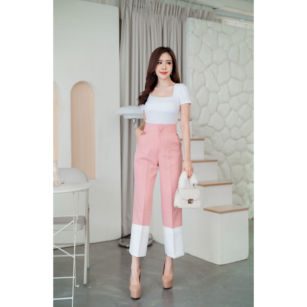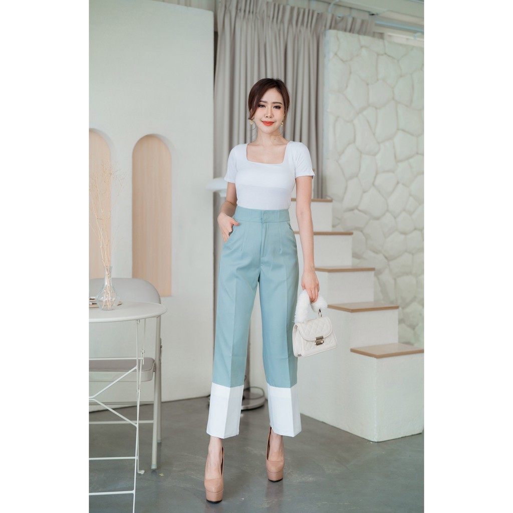 🔥🔥ลดโหด!!🔥🔥G45 กางเกงเอวสูง ทูโทน ตะขอหน้า ผ้าเปเป้ขายาว ซิปหน้า ใส่ทำงาน รับประกันคุณภาพผ้าดี <โค้ดลดเพิ่ม SMEDDAY615>