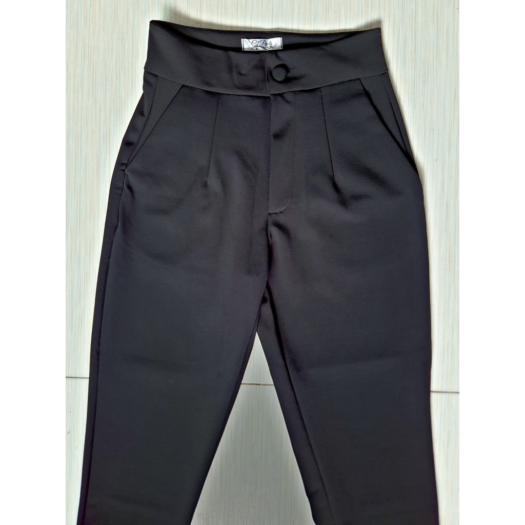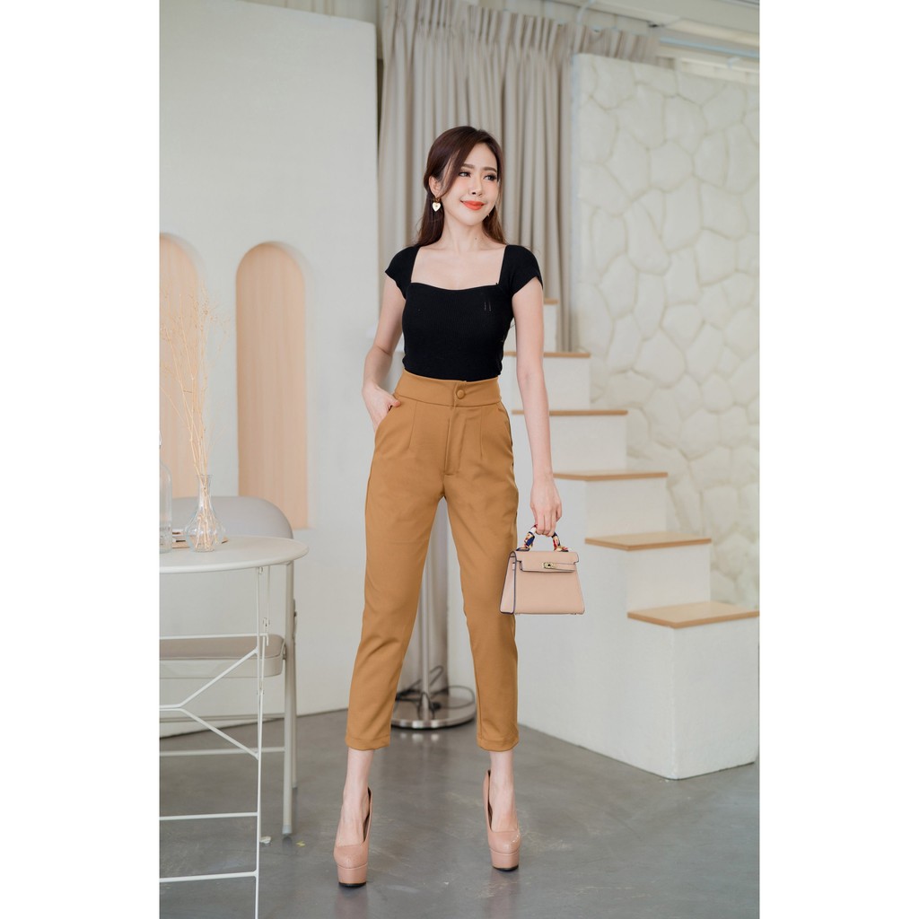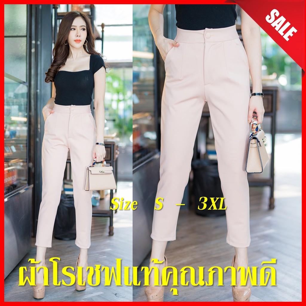 G46 กางเกงเอวสูง กระบอกเล็ก แปดส่วน ผ้าโรเชฟแท้ ซิปหน้า กระดุม ทรงสวย ใส่เที่ยว รับประกันคุณภ าพ < ลด 815SMEDDAY>