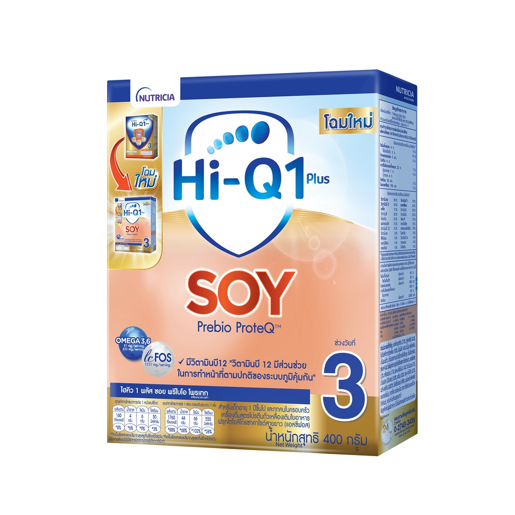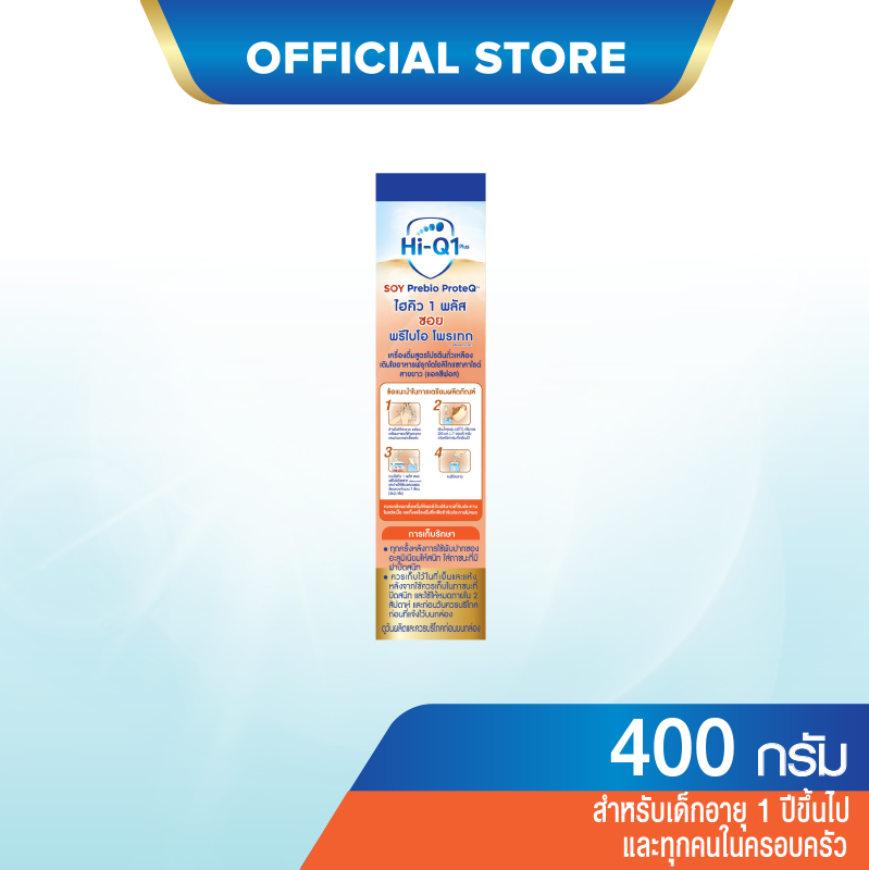 [นมผง] ไฮคิว 1 พลัส ซอย พรีไบโอโพรเทก สูตร 3 400 กรัม นมสูตรเฉพาะสำหรับเด็กอายุ 1 ปีขึ้นไปและทุกคนในครอบ ครัว Hi-Q Soy 1 Plus