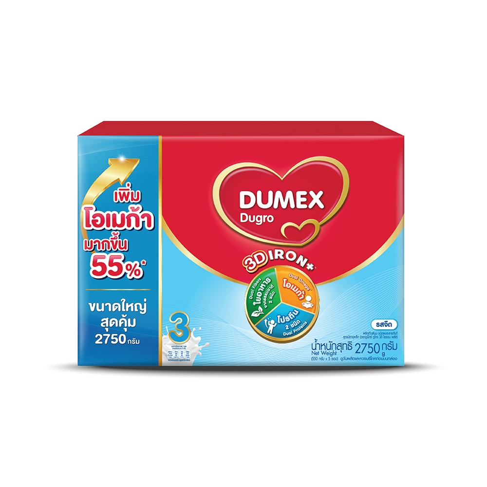 นมผง x 2กล่อง ดูเม็กซ์สูตร3 ดูโกร ไอรอนแอคทีฟพลัส รสจืด 2750 กรัม นมผงเด็ก 1 ปีขึ้นไปและทุกคนในครอบครัว