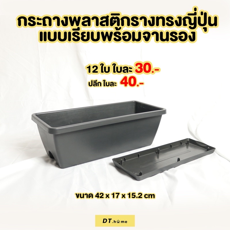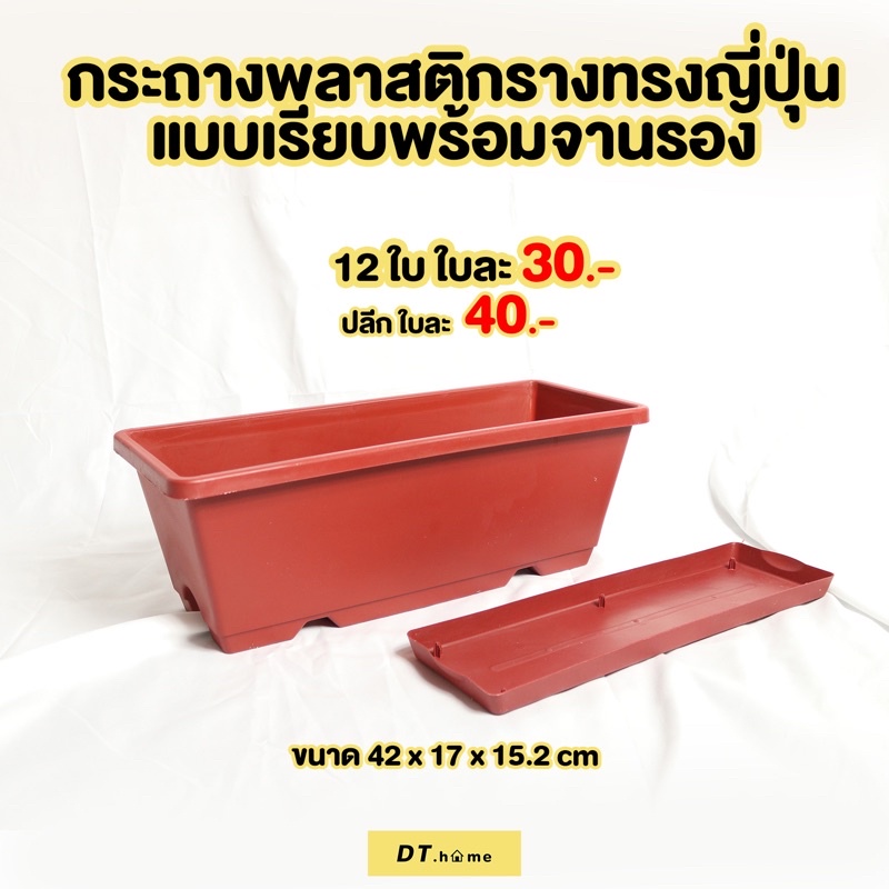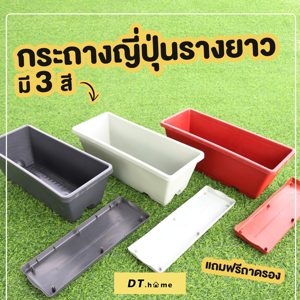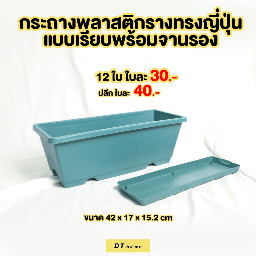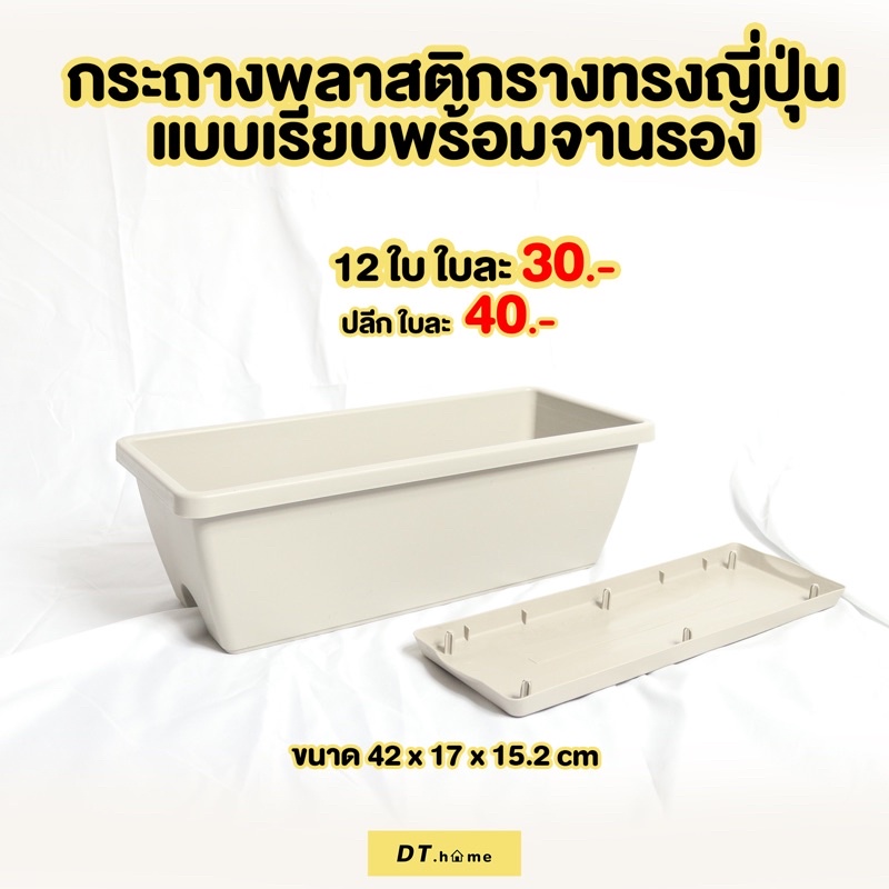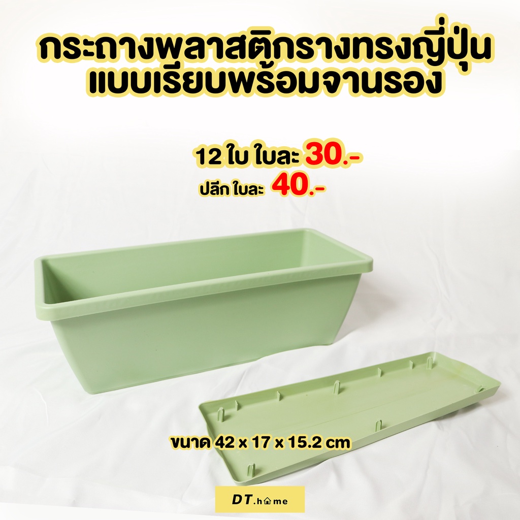 กระถางพลาสติกรางทรงญี่ปุ่นแบบเรียบพร้อมจานรอง