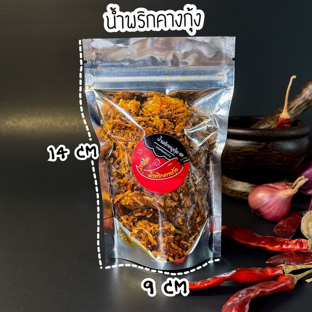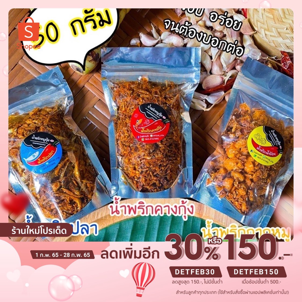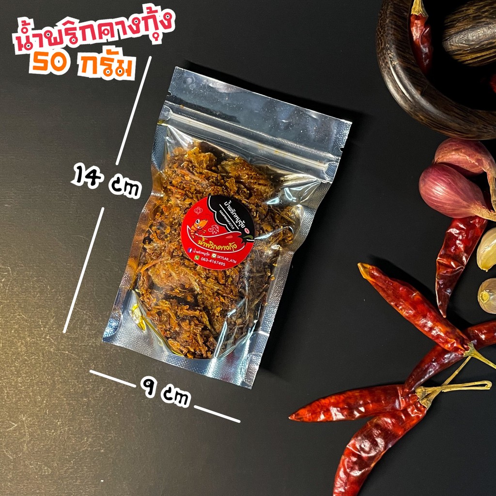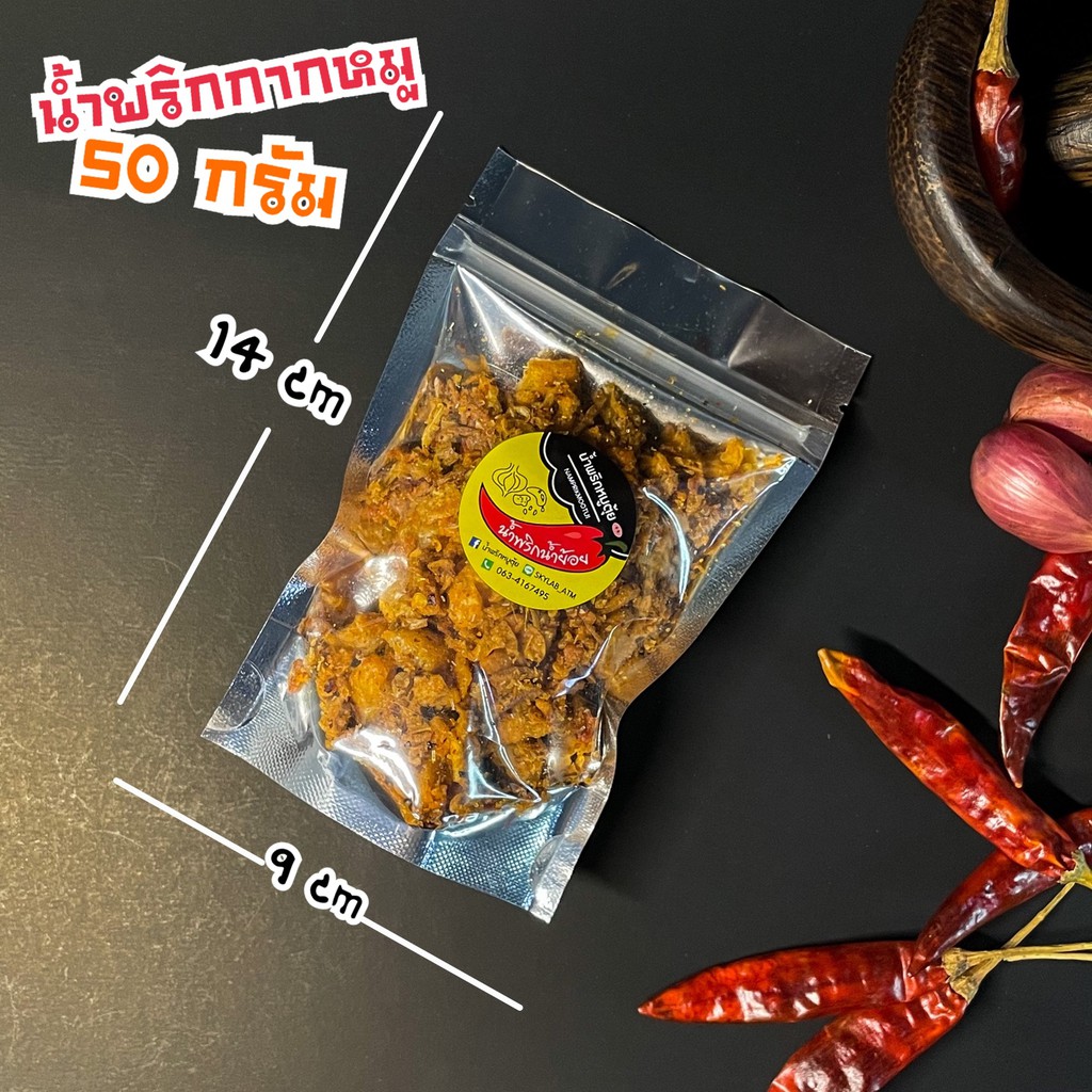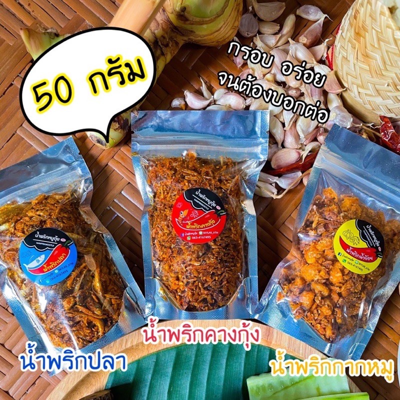 น้ำพริกกากหมู น้ำพริกปลา น้ำพริกคางกุ้ง สะอาดอร่อยทำสดใหม่ 50 กรัม/ถุง