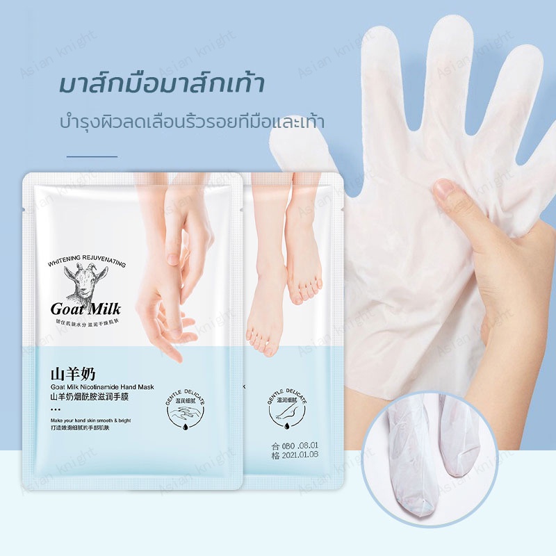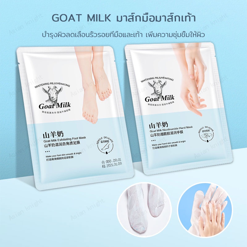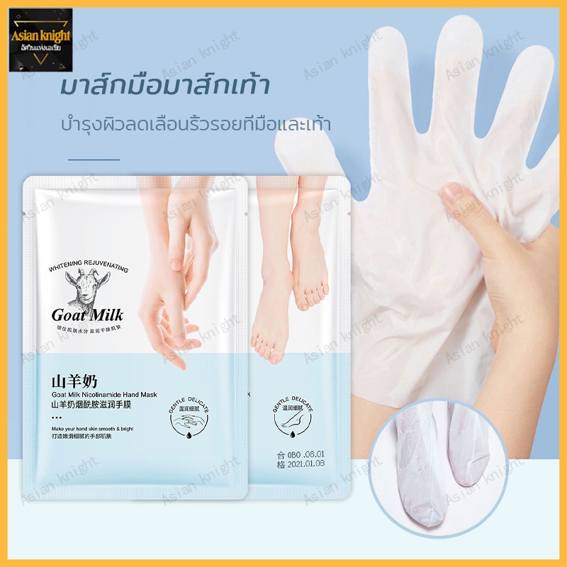 มาส์กมือมาส์กเท้า Goat Milk มาส์กเท้า แผ่นมาสก์คอ ไวท์เทนนิ่งและกระชับ ลดเลือนริ้วรอย ขจัดเซลล์ผิวที่ตายเเล้ว(374)