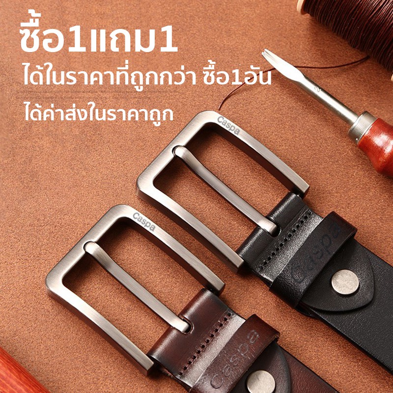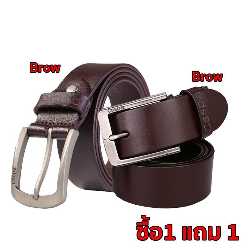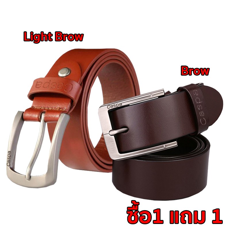 [ซื้อ1แถม1] Caspa เข็มขัดผู้ชาย เข็มขัดหนัง มี3สี ดำ น้ำตาล น้ำตาลอ่อน เข็มขัดยาว44นิ้ว
