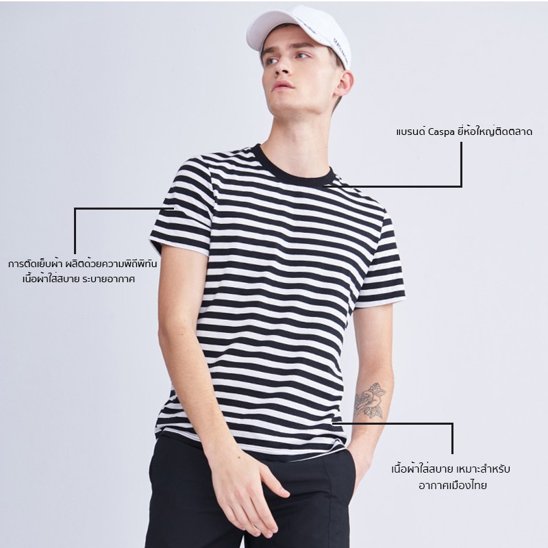 Caspa เสื้อยืดลายทาง Size S M L XL XXL มี2 Cuttingคุณภาพ รุ่น - M399T