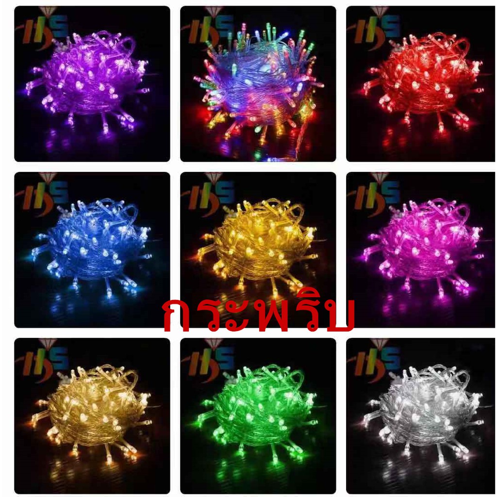 ไฟกระพร ิบ LED กันน้ำได้ 1 ชุดยาว8เมตร ใช้ตกแต่ง บ้าน ประดับสวน(100L กระพริบ)