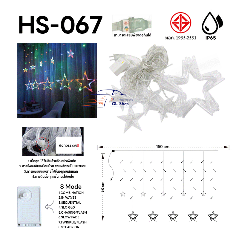 ไฟประดั บม่านหมู่ดาว ดีไซน์น่ารัก 2.5 เมตร (สีวอมไวท์ สีรวม สีขาว) ปรับได้ 8 จังหวะ