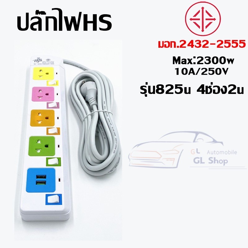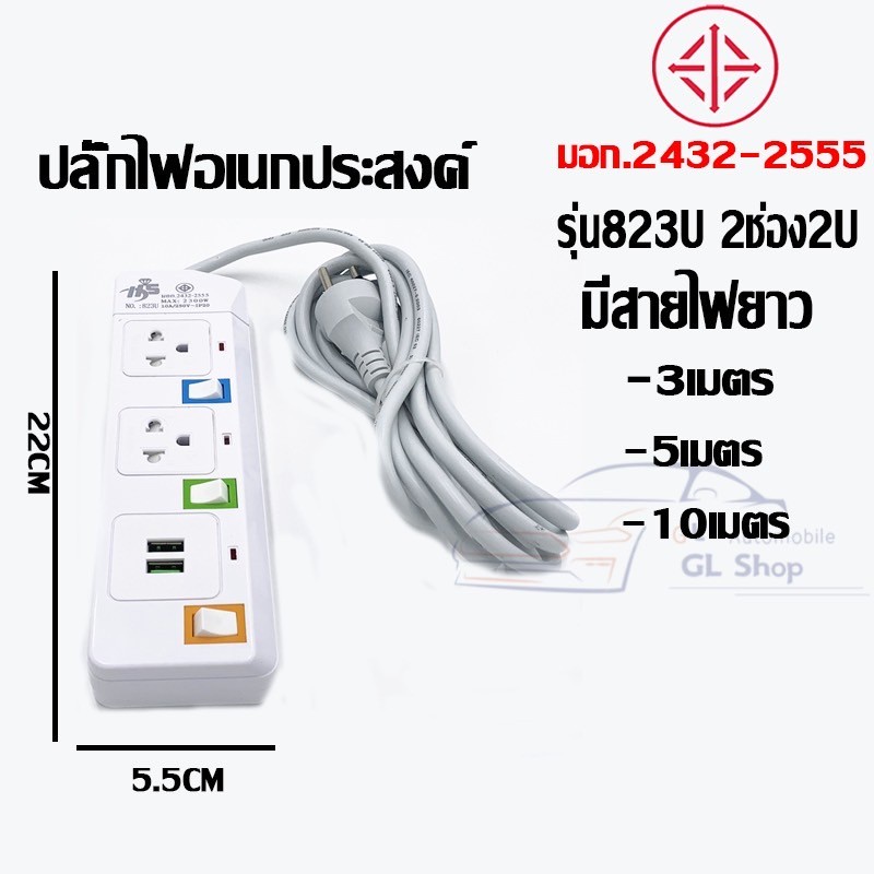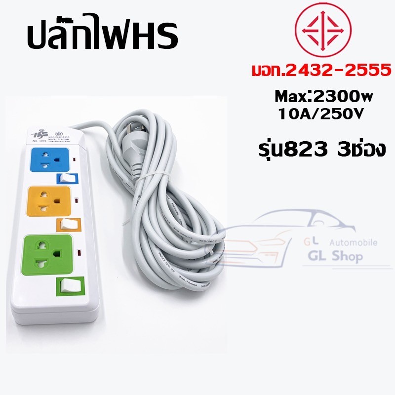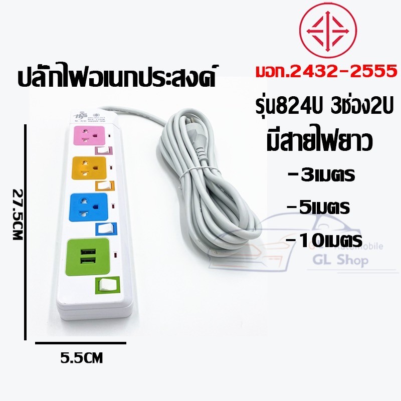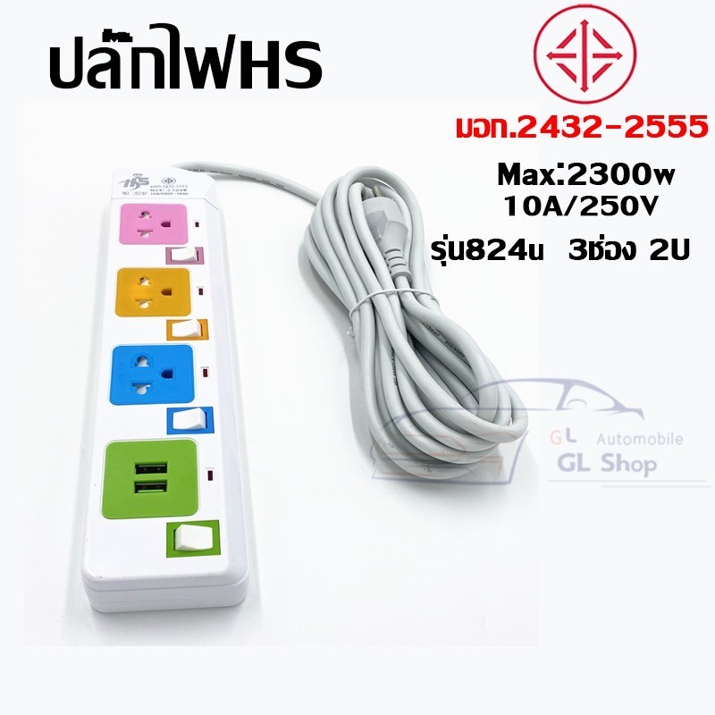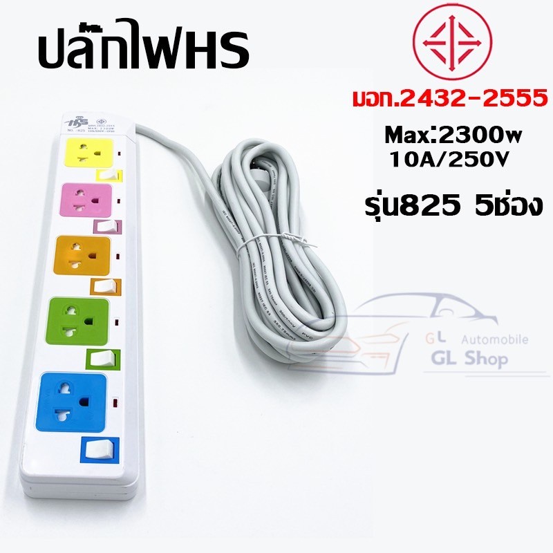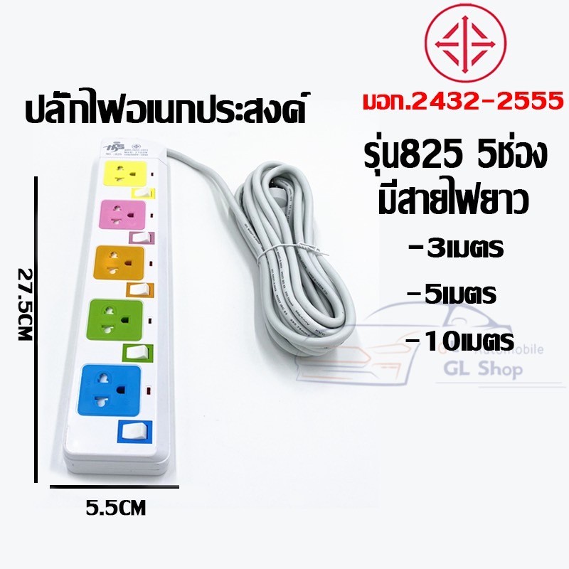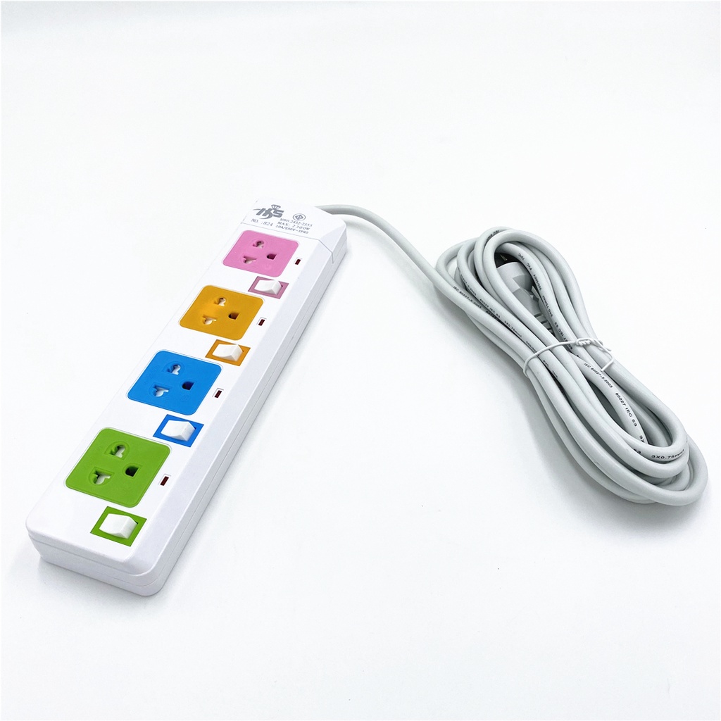 ปลั๊กไฟมาตราฐาน มี มอก. แข็งแรง 2300W 10A/250V IP20 3,5,10เมตร สีสดใส มีสวิตตัดไฟอัตโนมัติ