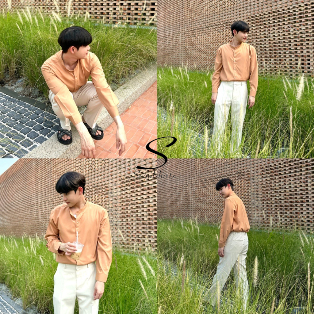 เสื้อเชิ้ตผู้ชาย คอจีน แขนยาว สไตล์เกาหลี มีไซส์ M-2XL ผ้านิ่ม ใส่สบาย ยับยาก