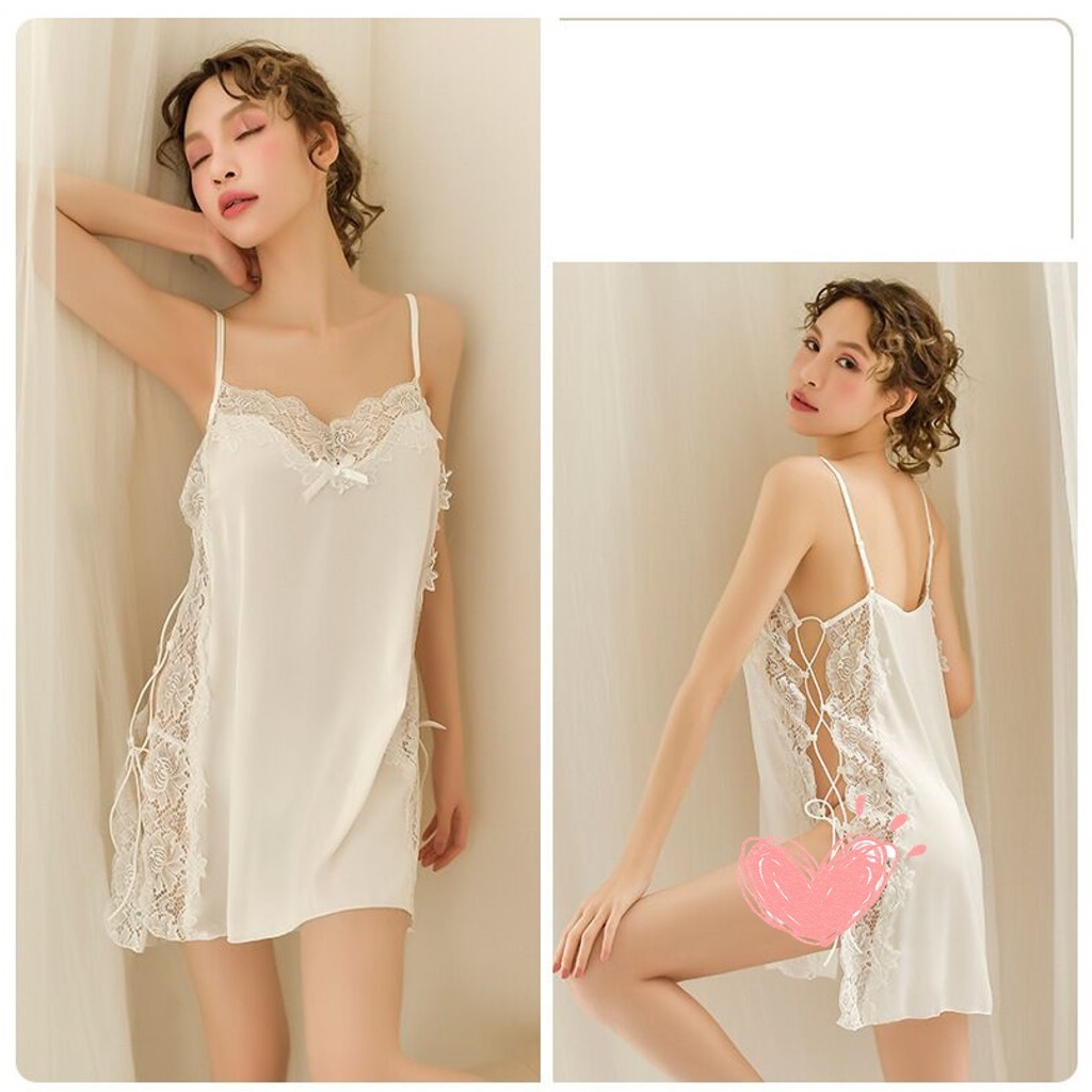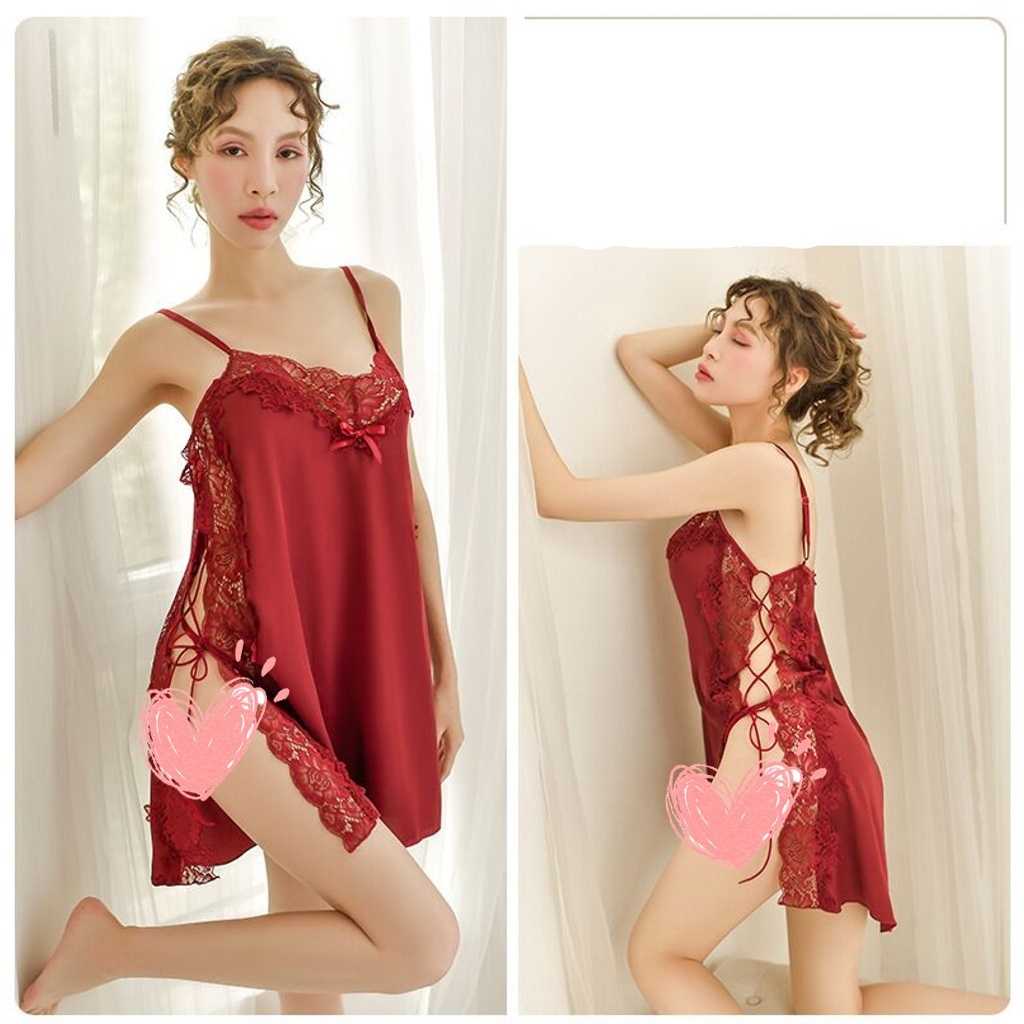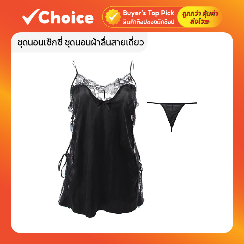 ชุดนอนเซ็กซี่ ชุดนอนผ้าลื่นสายเดี่ยว ลูกไม้ซีทรู ไซส์ M