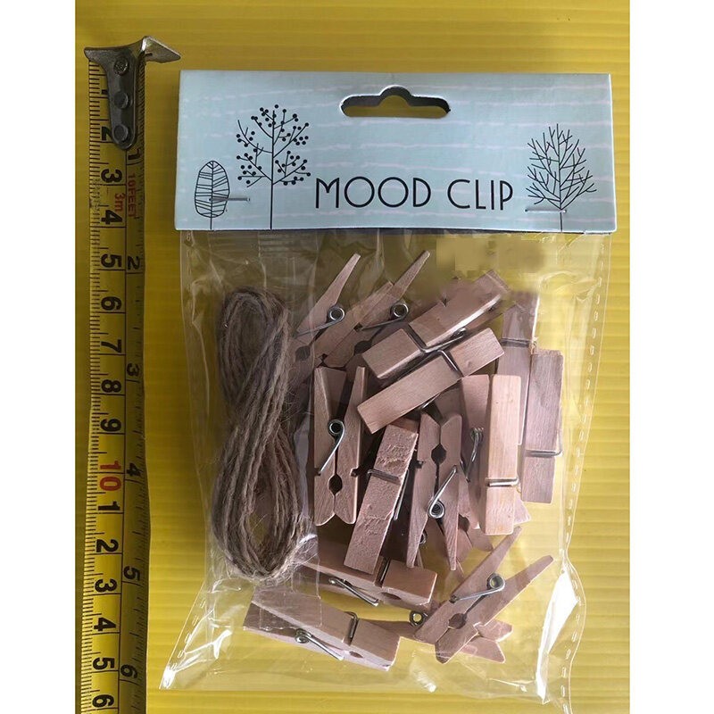 ไม้หนีบไม้ 20 ตัว ขนาด 3.5 ซม. พร้อมเชือกป่าน สำหรับหนีบรูป งานกิ๊ฟช็อป แขวนรูปง่าย