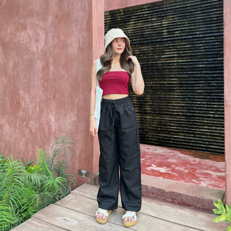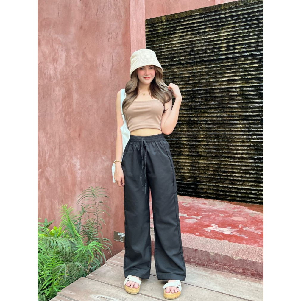 กางเกงขายาวผู้หญิง กางเกงทรงขากระบอก กางเกงเอวสูง ผ้าไมโครเนื้อดี แมทช์ง่าย