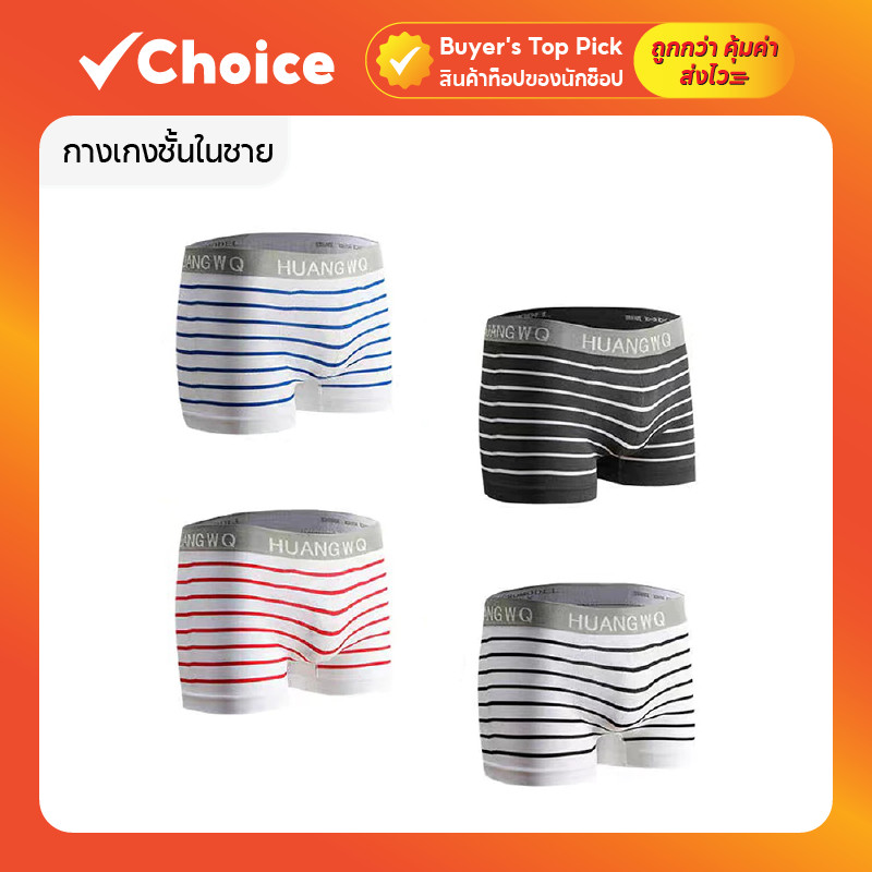 กางเกงในชาย ลายทาง เนื้อผ้านิ่ม เบาบาง ใส่สบาย ไม่อึดอัด ฟรีไซส์ เอว 28-40 นิ้ว