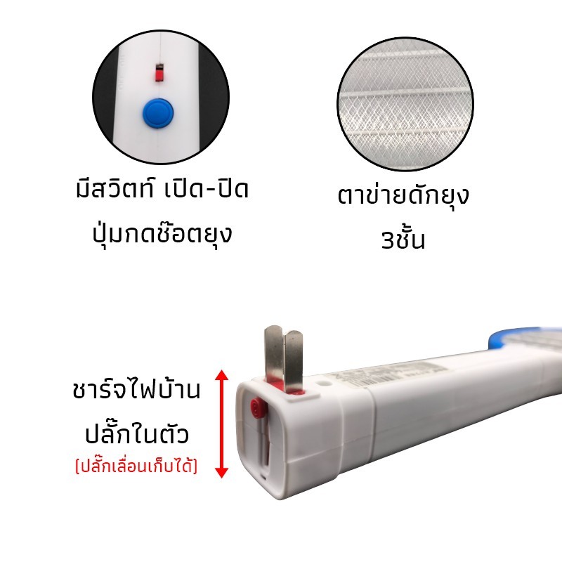 ไม้ตียุงไฟฟ้า ไม้ช็อตยุง ชาร์จแบตได้ เก็บไฟนาน ไม้ตบยุงไฟฟ้า รุ่น ST-307