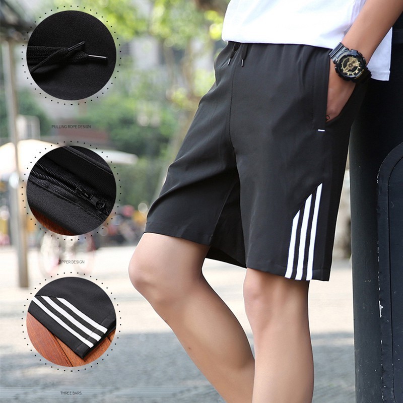 กางเกงสามส่วนสปอร์ต ทรงสามส่วน ตกแต่งแถบข้างสวยงาม ผ้าระบายอากาศ เอวยางยืด