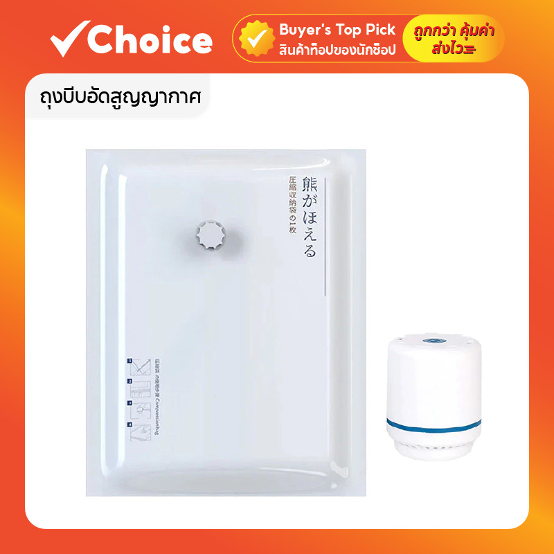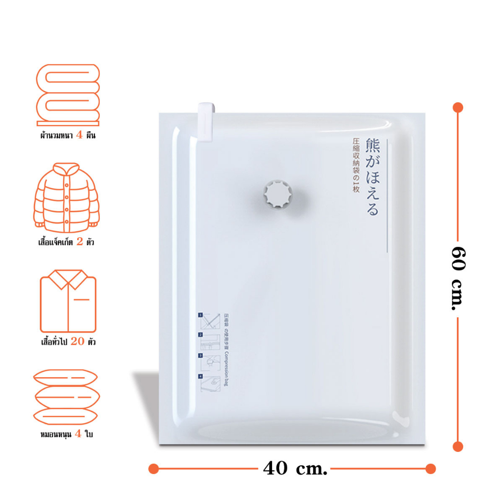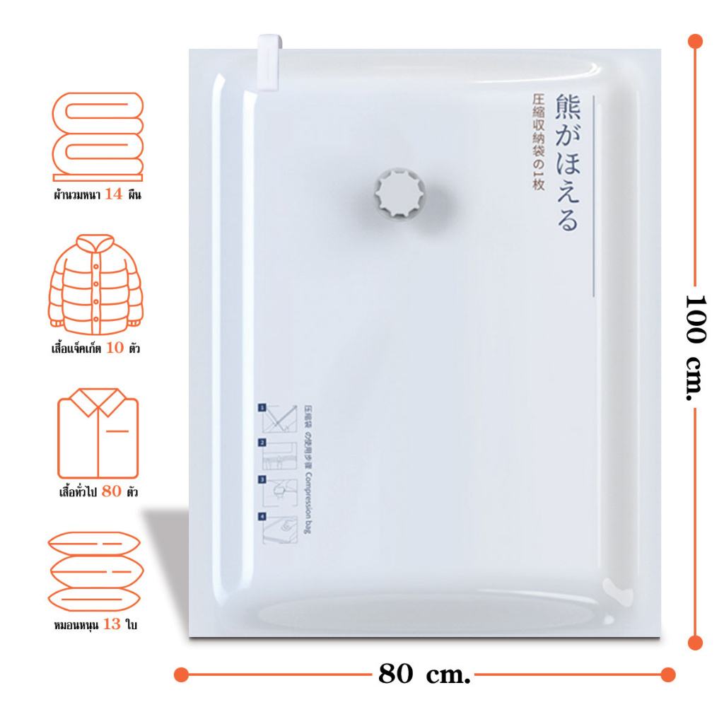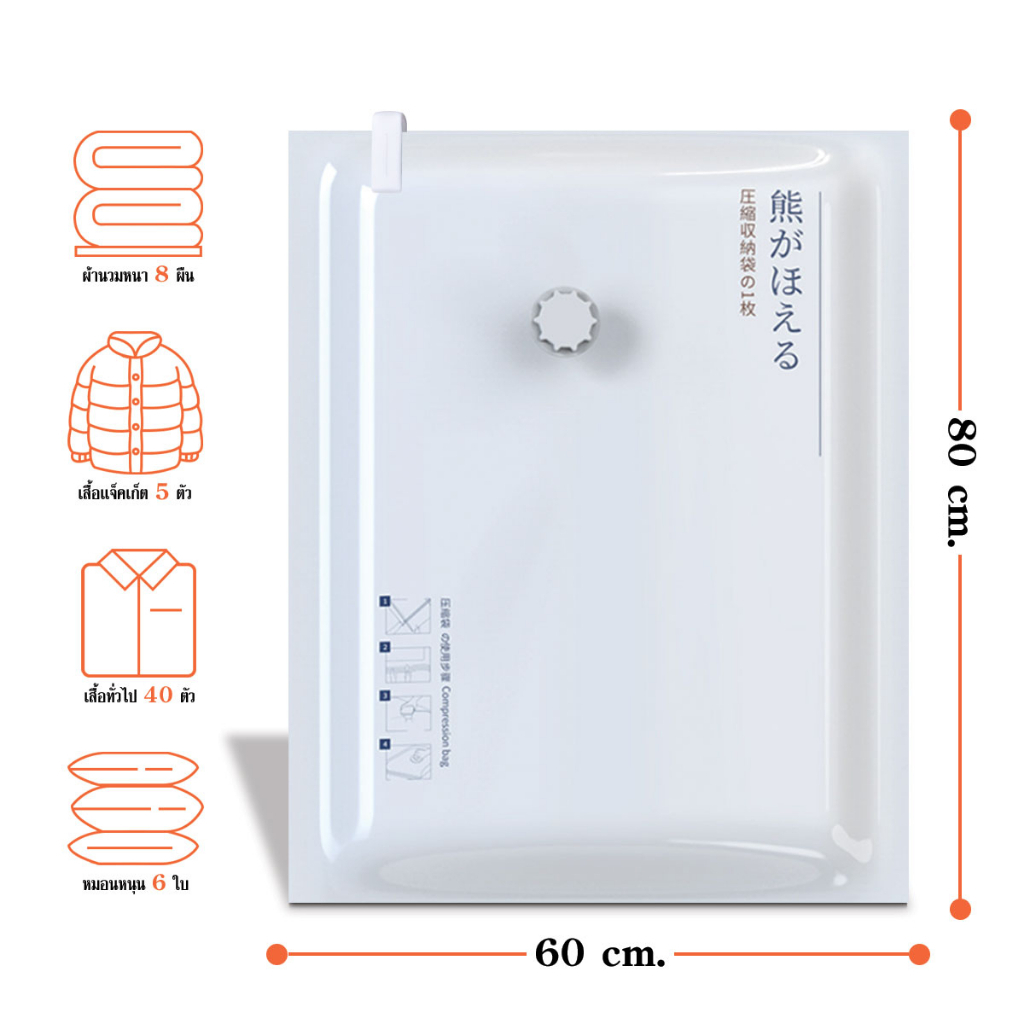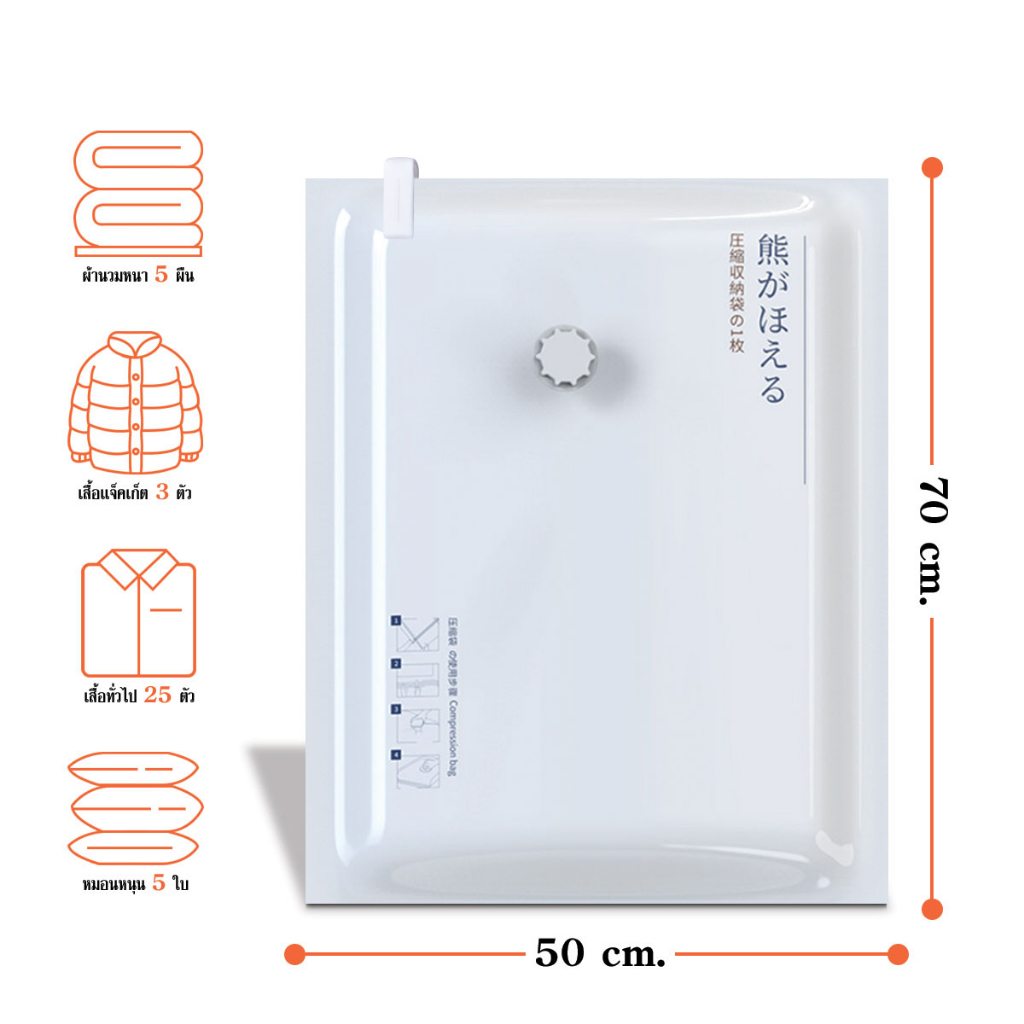 ถุงบีบอัดสูญญากาศ ถุงเก็บผ้านวม/เสื้อผ้า (White-Bear) 50x70 / 80x100 ซม. (1 ชิ้น)