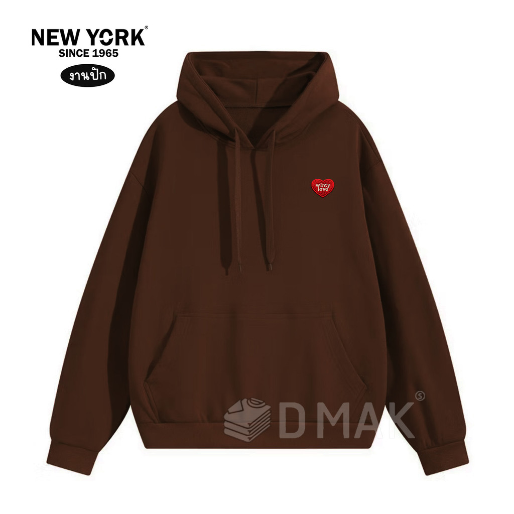 WINTY Hoodie เสื้อคลุมแขนยาวมีฮู้ด คอสวม ปักลายหัวใจ ผ้าคอตตอนวอร์ม กันหนาว กันแดด
