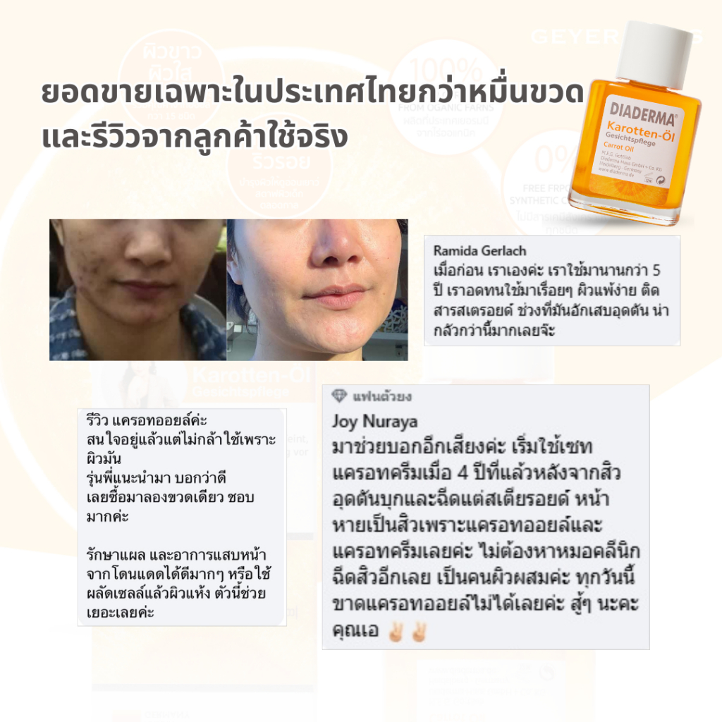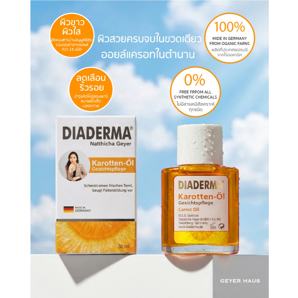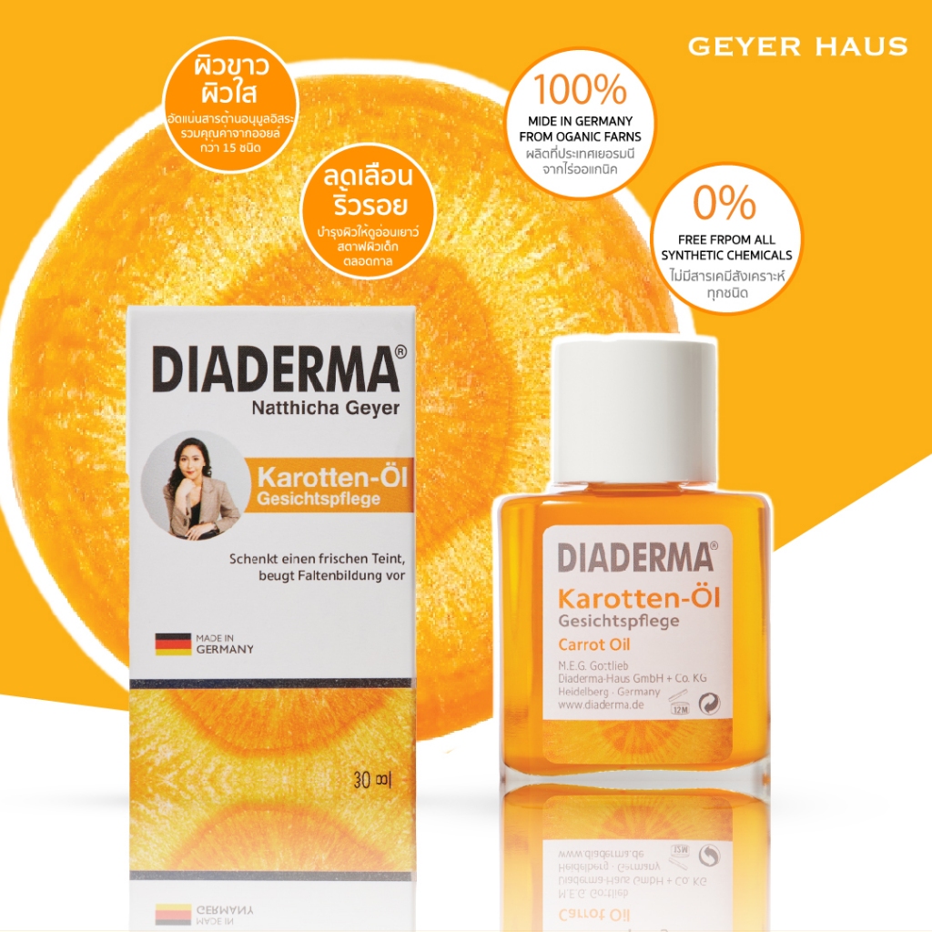 DIADERMA Carrot Oil สูตรดั้งเดิม ของแท้ต้องมีรูปคุณเอเท่านั้น (ไม่ใช่สูตร Q10)