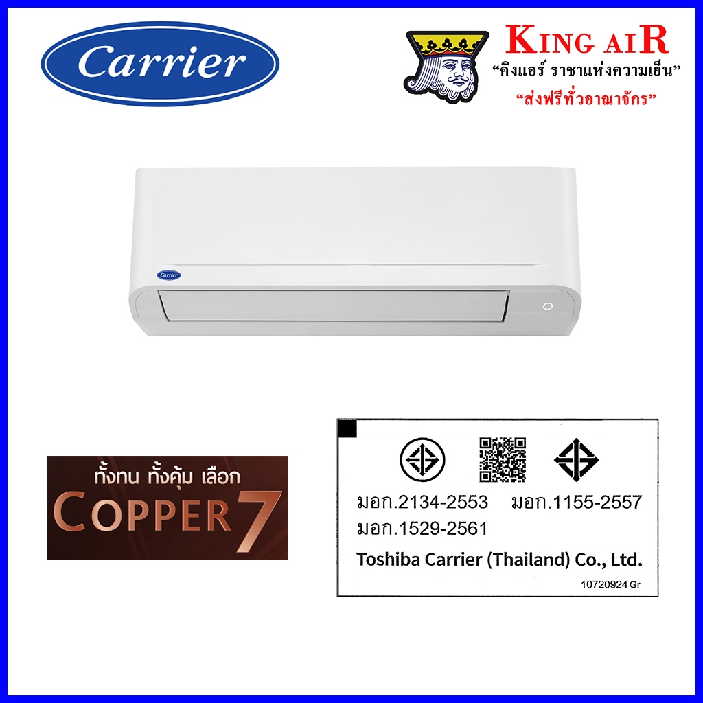 แอร์ แคเรียร์ Carrier ระบบธรรมดา รุ่น Copper7 รุ่นใหม่ล่าสุด!!! รังผึ้งทองแดง ถอดถาดน้ำทิ้งได้