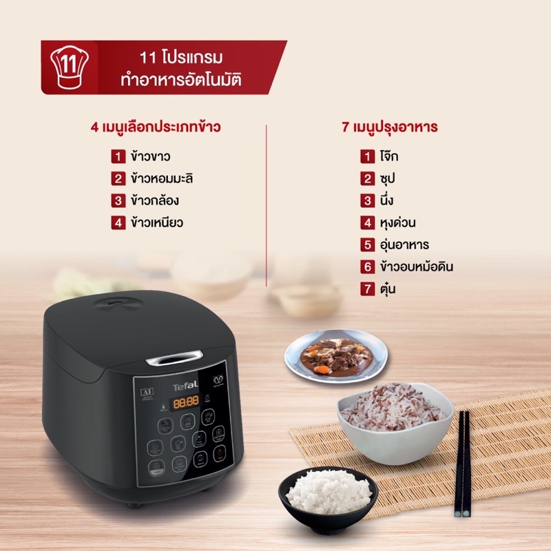TEFAL หม้อหุงข้าว EASY RICE PLUS ขนาด 1.8 ลิตร รุ่น RK736B66 (รับประกันศูนย์ 2 ปี)