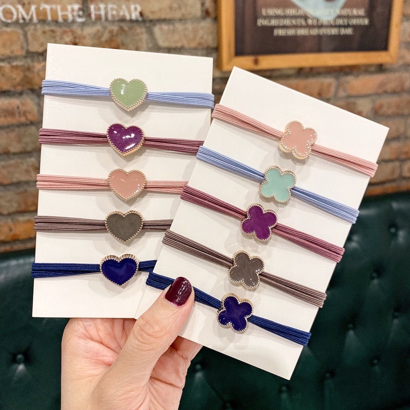 A91 ยางรัดผมหัวใจและใบนำโชค ยางรัดผมแฟชั่นสไตล์เกาหลี พร้อมส่ง