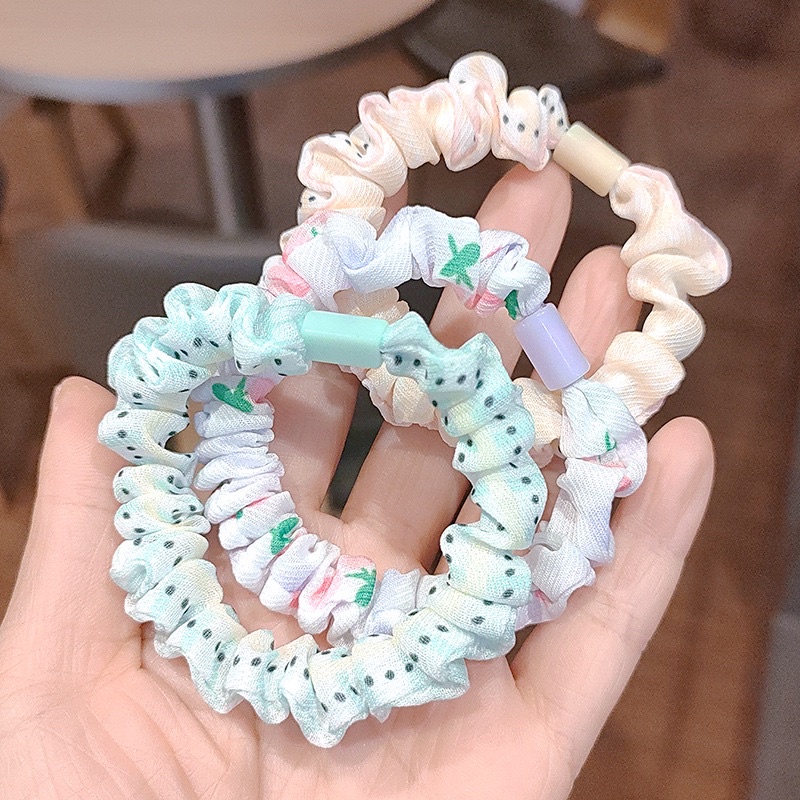 A105 ยางรัดผมจีบลายผลไม้ สไตล์เกาหลี พร้อมส่งในไทย