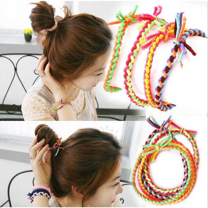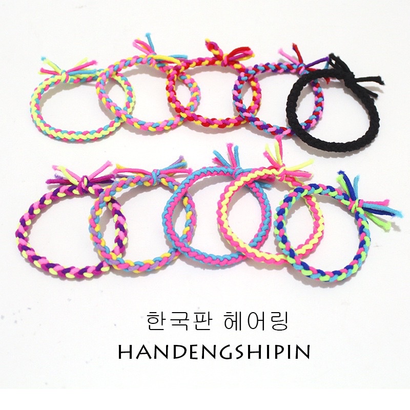 A300 ยางรัดผมถักสีสันสดใส สไตล์เกาหลี พร้อมส่งในไทย