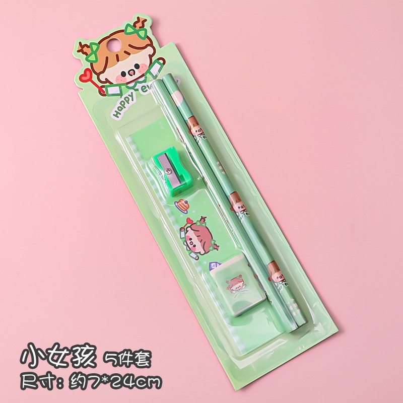 A357 ชุดเครื่องเขียน แพ็ค 5ชิ้น (ดินสอ ยางลบ ไม้บรรทัด กบเหลา) คริสมาส ให้ของขวัญ ของแจก ถูกที่สุด พร้อมส่งในไทย