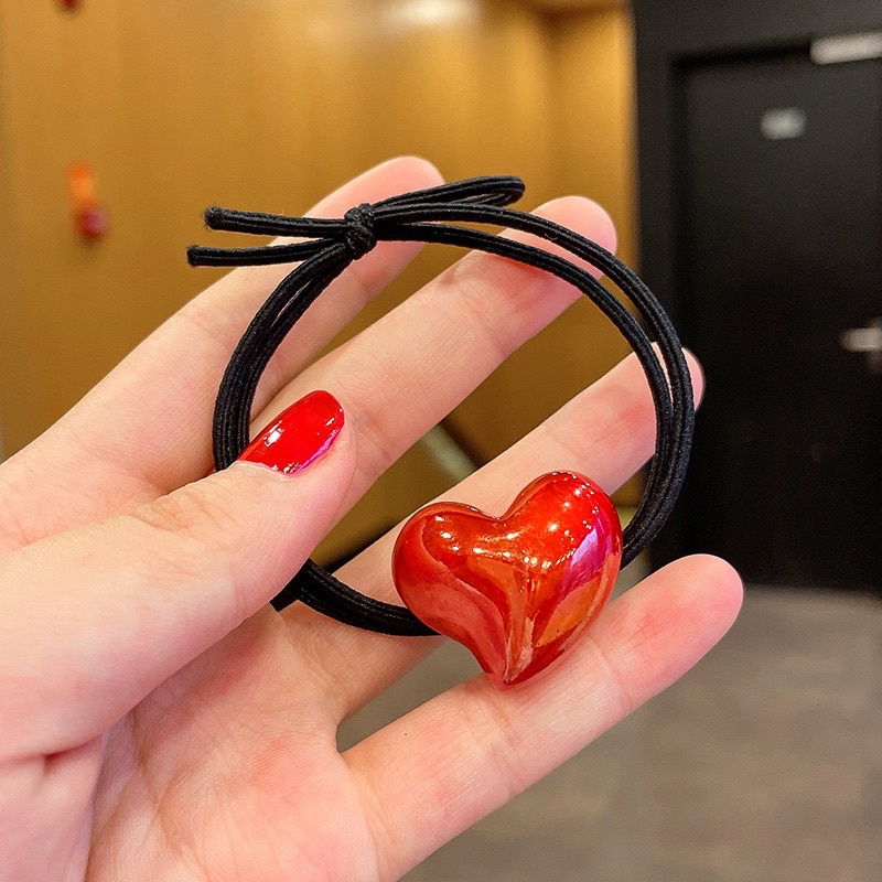 A356 ยางรัดผมแฟชั่น ยางรัดผมเจลลี่หัวใจแดง พร้อมส่งในไทย