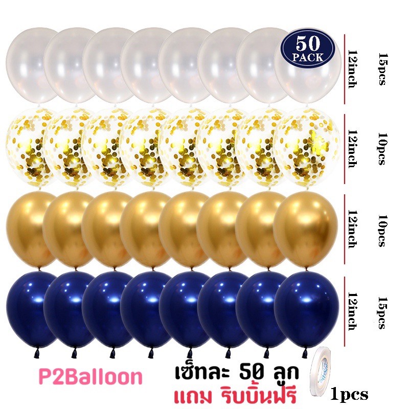 A298 ลูกโป ่งวันเกิด เซ็ทลูกโป่งไฮโซ เซ็ทละ 50 ลูก แถมฟรีริบบิ้น