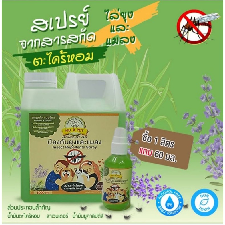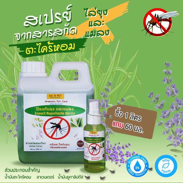 สเปรย์ตะไคร้หอม ไล่ยุงและแมลง 1 ลิตร แถมสเปรย์ตะไคร้หอม 60 ml 1 ขวด