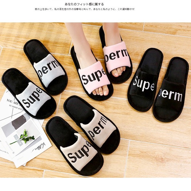 (SH-1-03) รองเท้าผ้าใส่เดินในบ้าน ชายและหญิง กันลื่น ลาย Supe-perm
