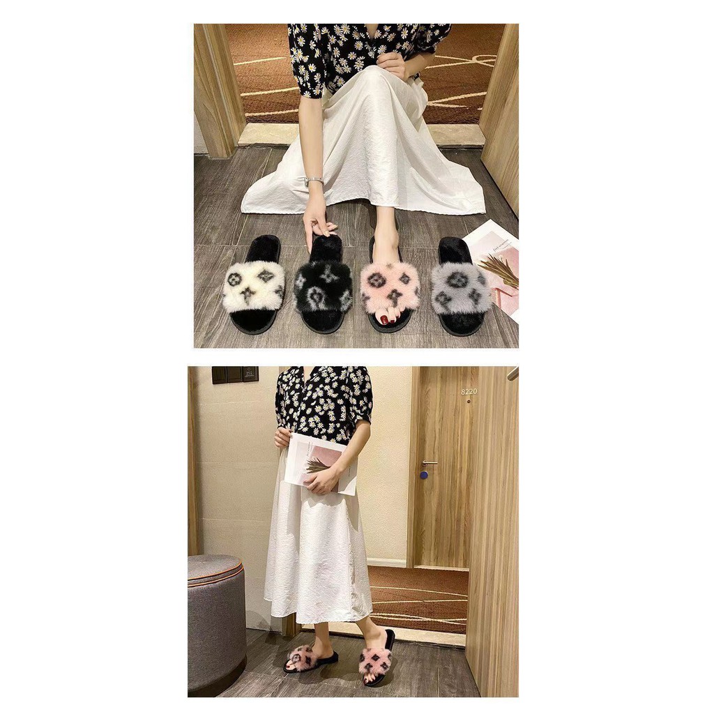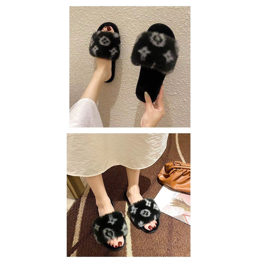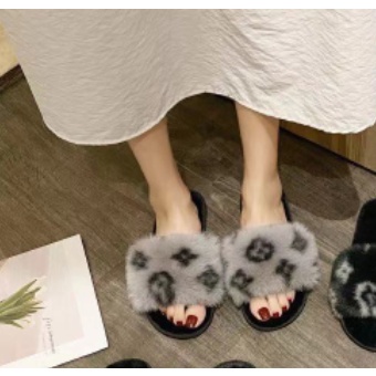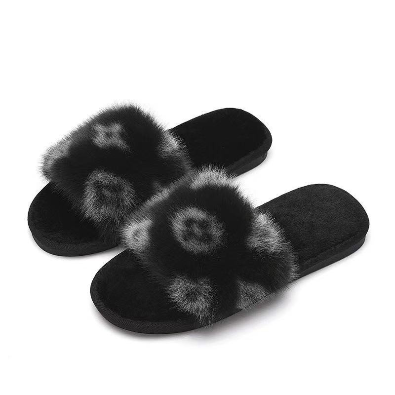 NEW! (SH-1-12) รองเท้าผ้าใส่เดินในบ้านชายและหญิง ขนนุ่มลายดอก