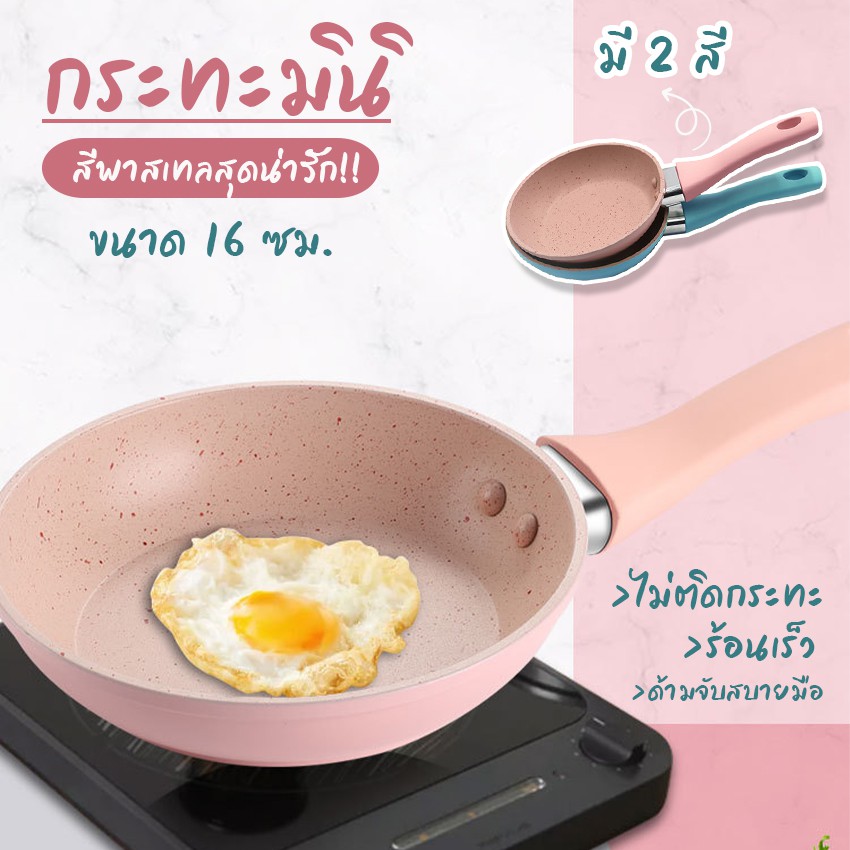 MegaHouse กระทะมินิ สีพาสเทล สุดน่ารัก เคลือบหินอ่อน ขนาด 16 ซม. No.Y746 Y793