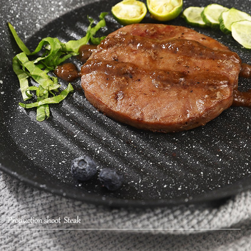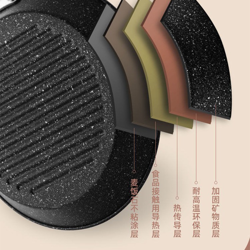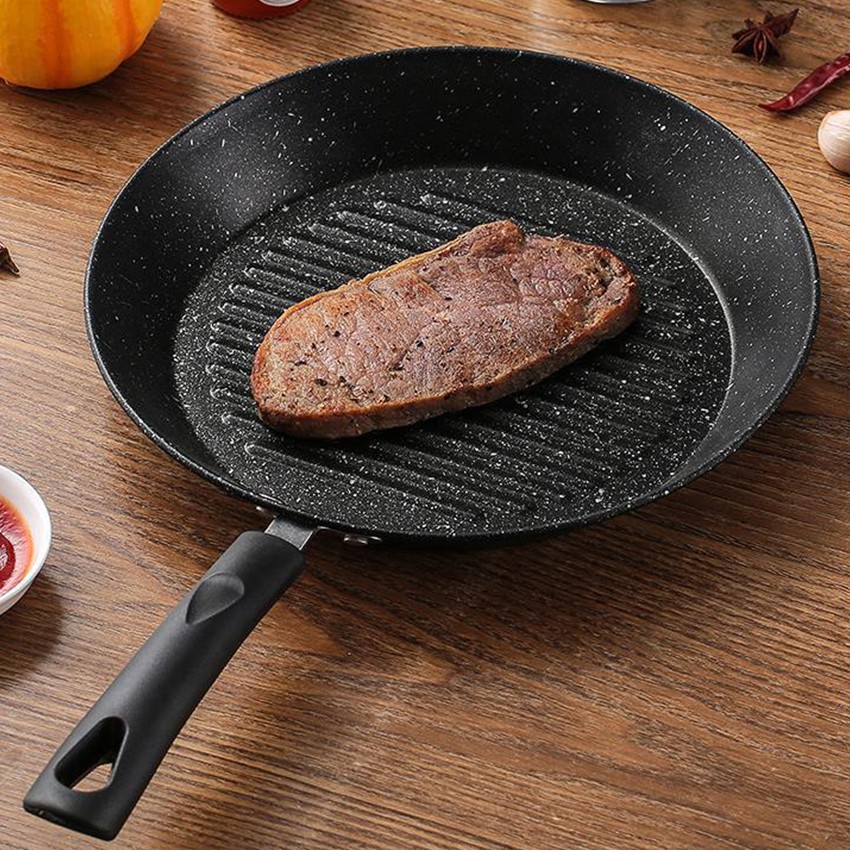 MegaHouse กระทะ กระทะย่าง ก้นแบนมีลอนหยัก ขนาด 24 ซม. เคลือบหินอ่อน No.Y590