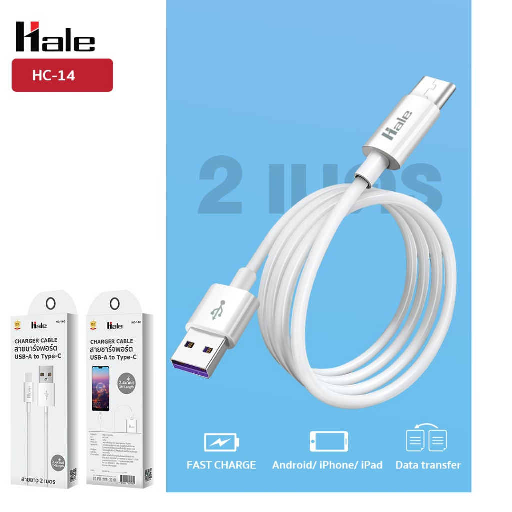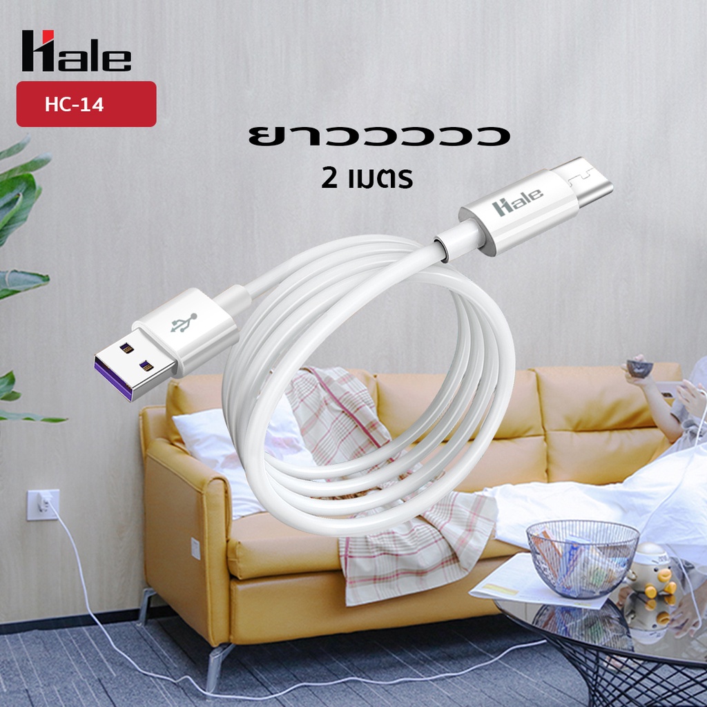 Hale HC-14 สายชาร์จยาว 2 เมตร Charge Cable 2m กระแสไฟชาร์จเร็ว 2.4 A มีให้เลือก 3 พอร์ต Micro/Type-C/Li