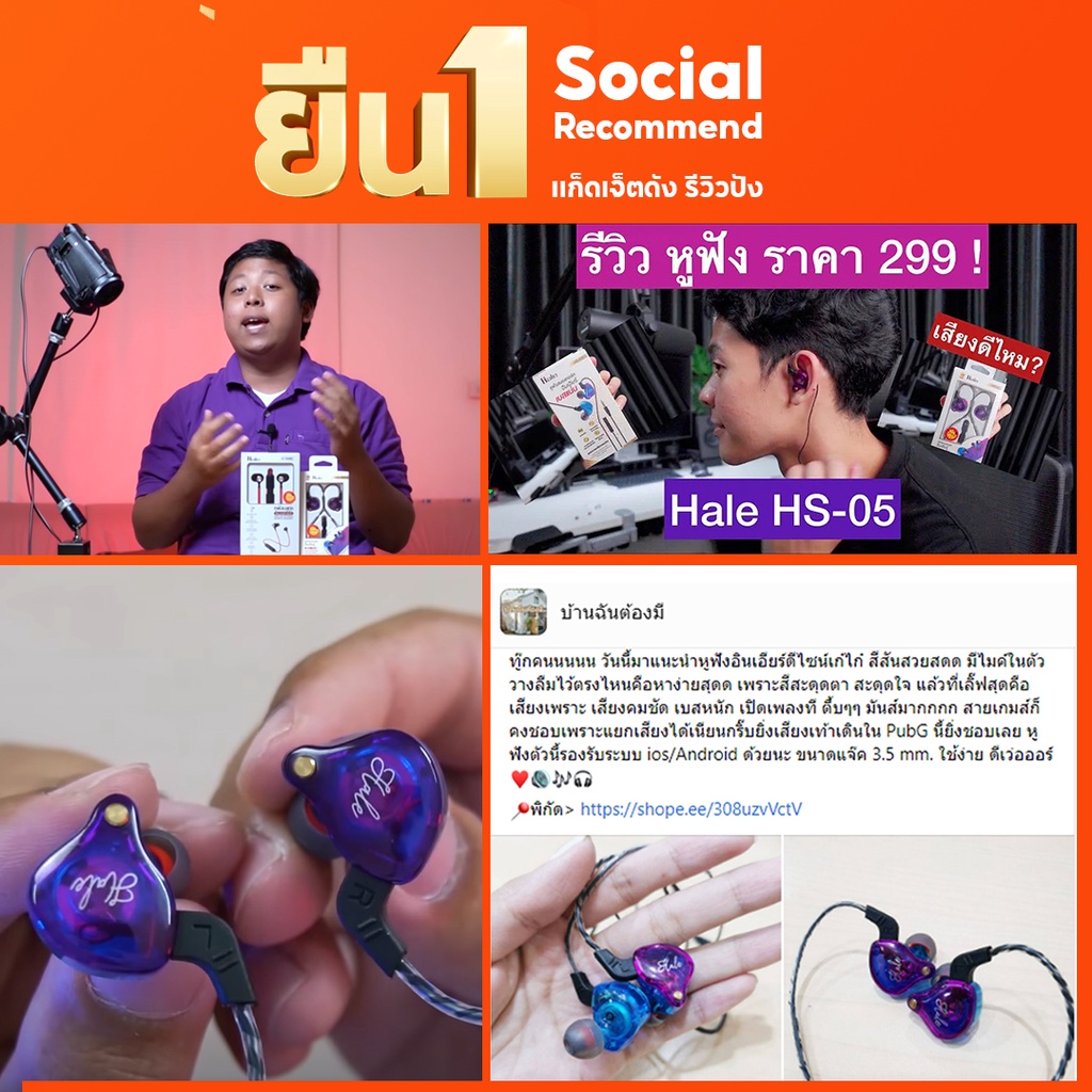 Hale หูฟังสาย เสียง in ear Smalltalk ไมค์โครโฟนในตัว พอร์ต Aux 3.5 mm HS-20 type-C HS-05 04A HS-20