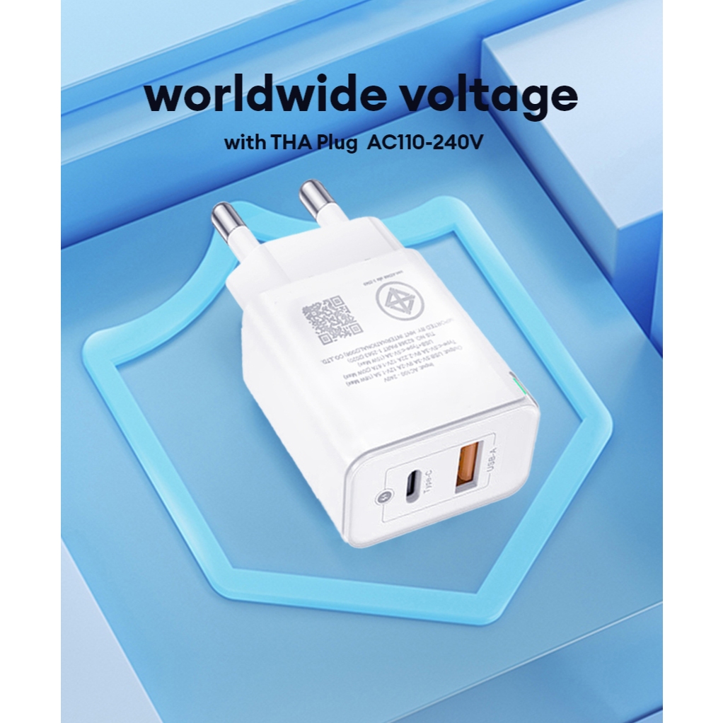 HALE 42.5W หัวชาร์จเร็ว 2 พอร์ต USB-A +USB-C สำหรับ ϊPhone ϊPad โน็ตบุค แท็บเล็ต MateBook Huawei Samsung H07