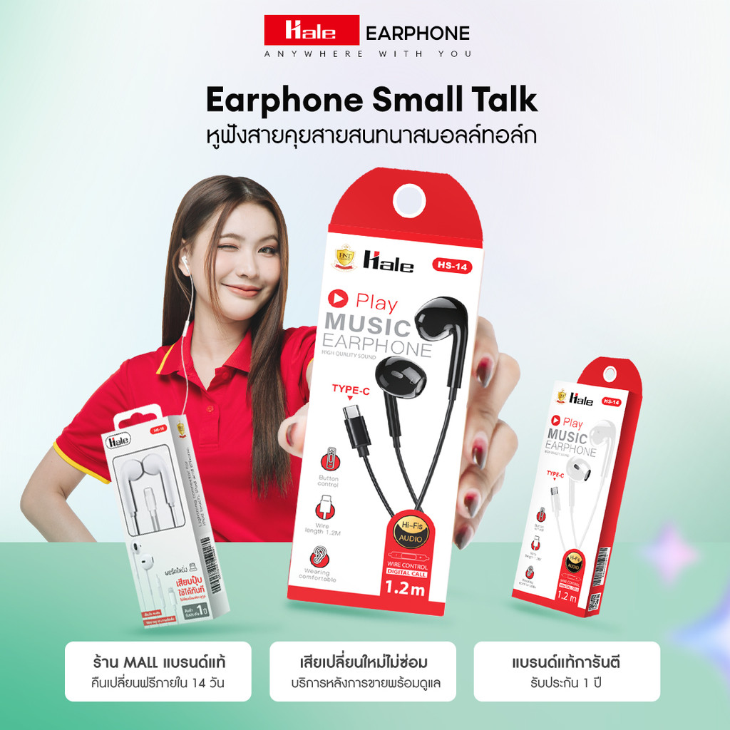 Hale หูฟังพร้อมไมโครโฟนในตัว สมอลทอร์ค สำหรับมือถือ แท็บเล็ต โน้ตบุ๊ค Earphone Type-C Aux 3.5 HS-14 HS-19