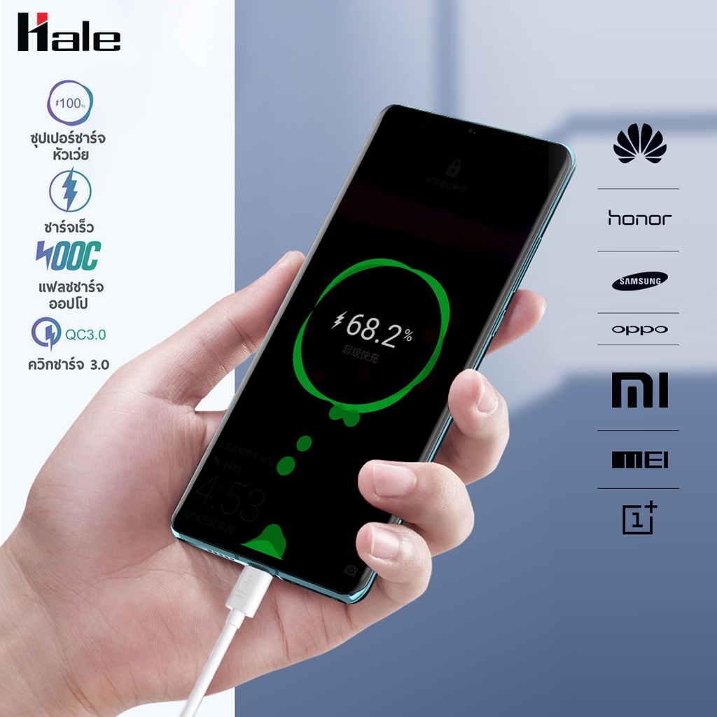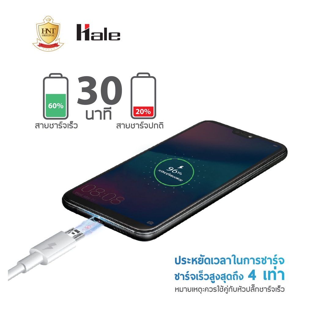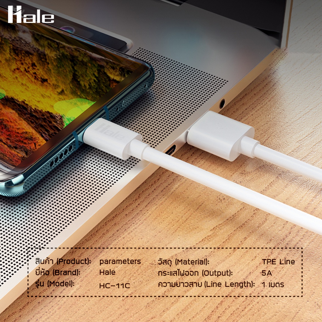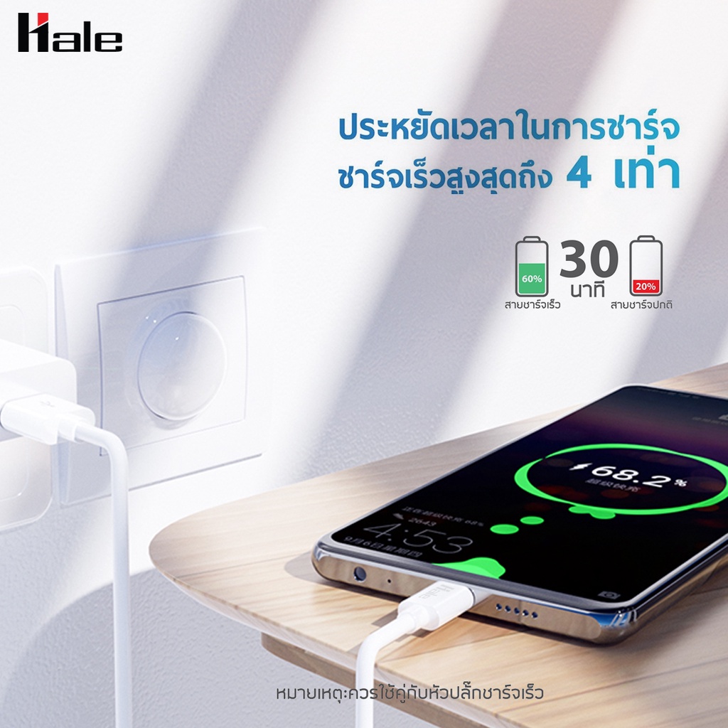 Hale HC-11 สายชาร์จ QC 3.0 พอร์ต Micro ซัมซุง รองรับซุปเปอร์ชาร์จเร็ว 5A QC 3.0 Fast charge ความยาวสาย 1 เมตร