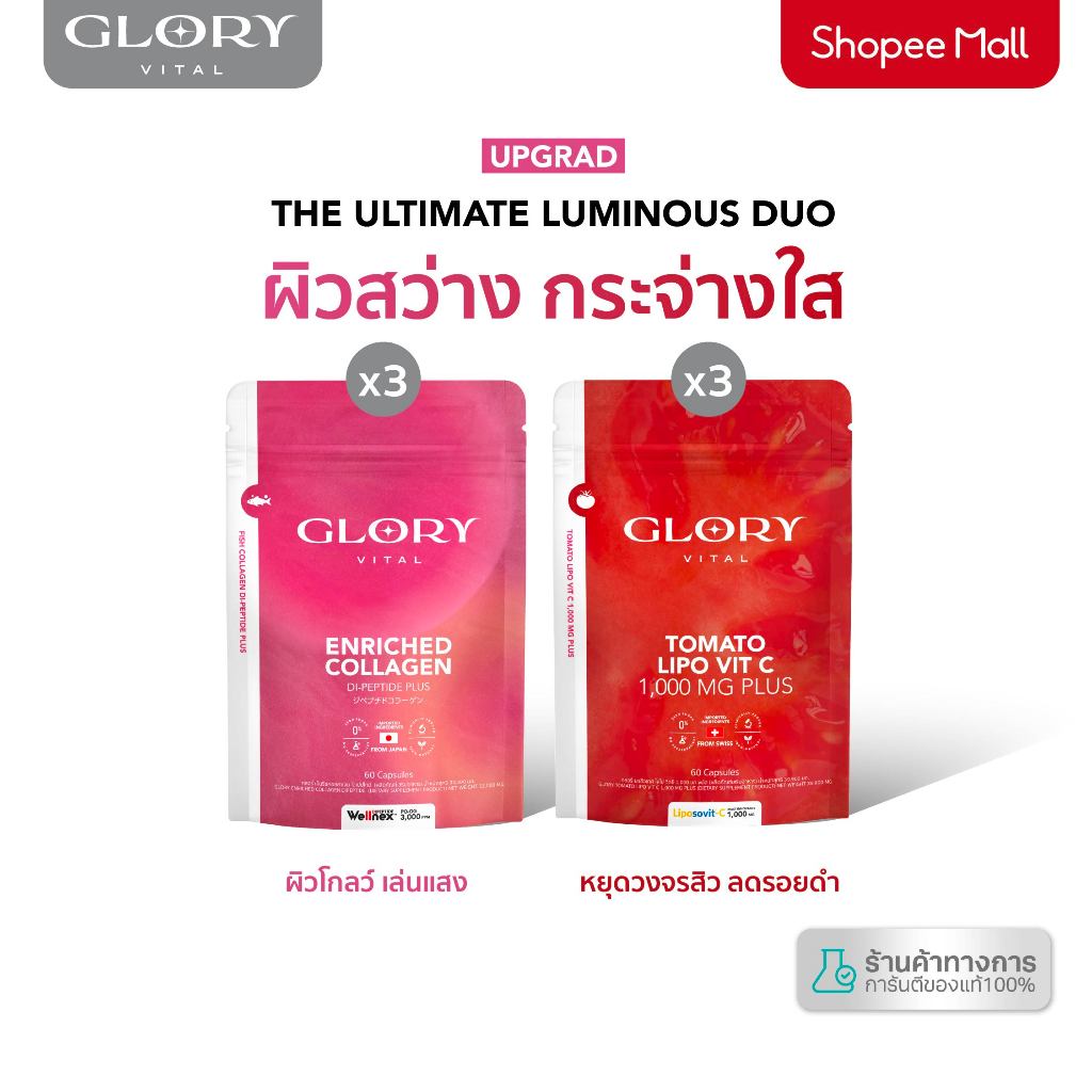 Glory Duo Set Enriched Collagen กลอรี่ คอลลาเจน + Tomato Lipo VitC วิตามินซีมะเขือเทศเข้มข้น รวม 6 ซอง