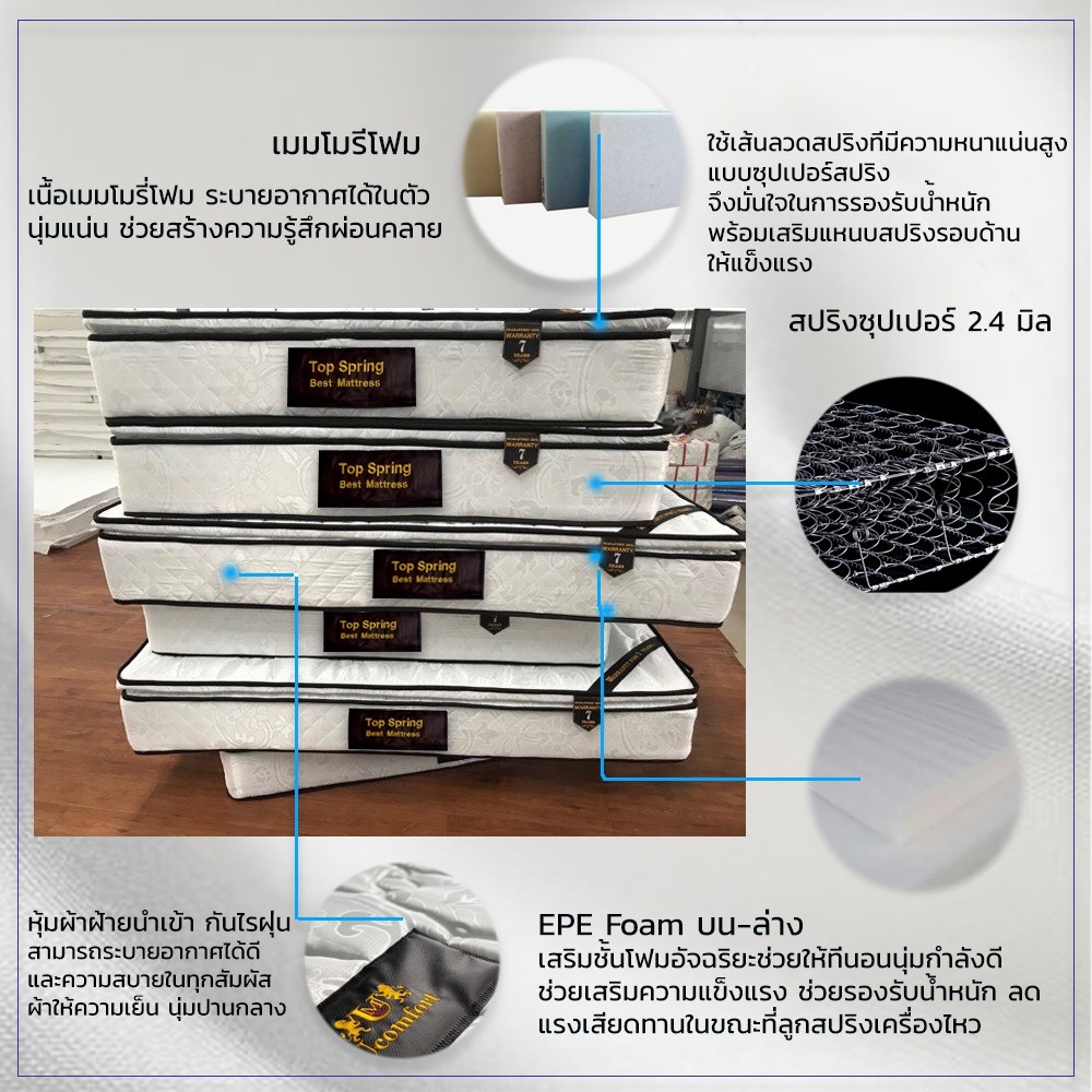 UCOMFORT รุ่น pillowTOPSpring (ucomfort) หนา 10 นิ้ว ส่งฟรี (แถมหมอนหนุนและหมอนข้าง)