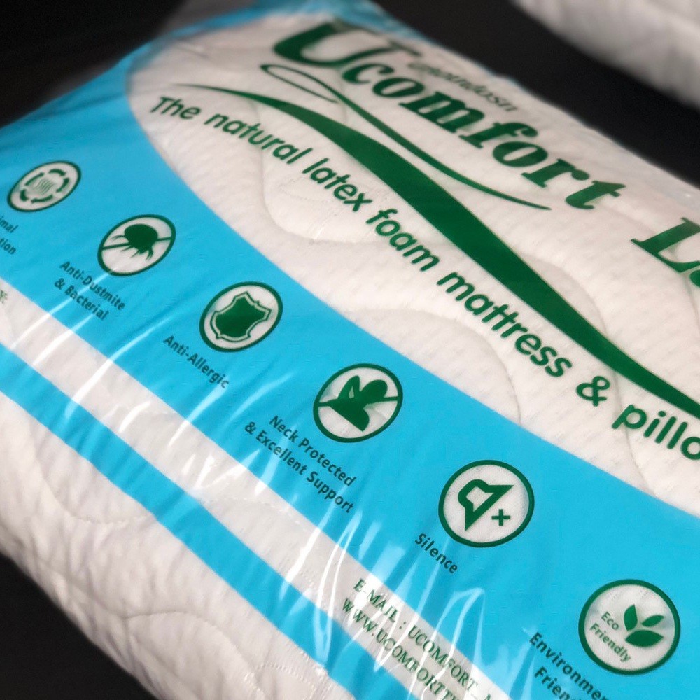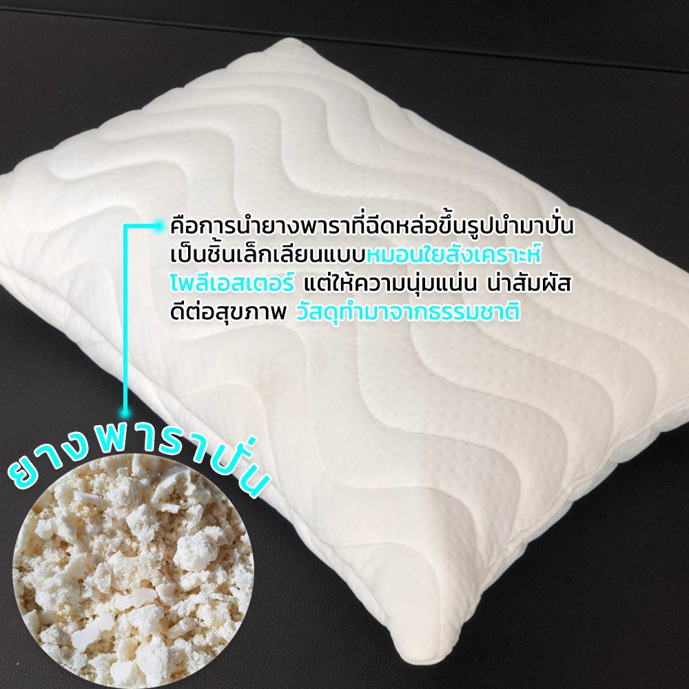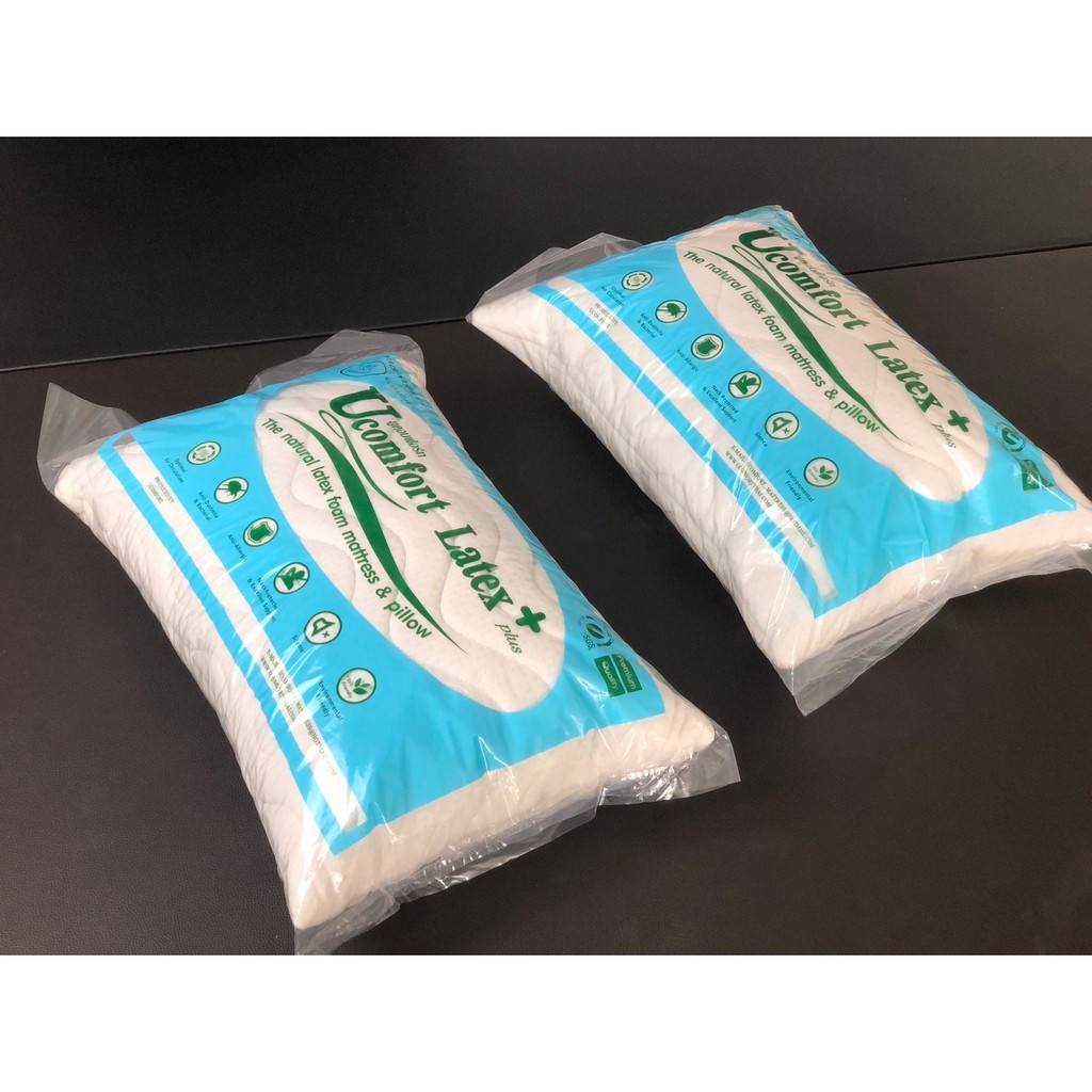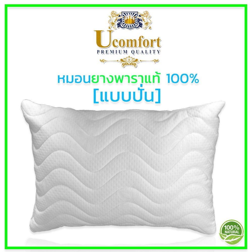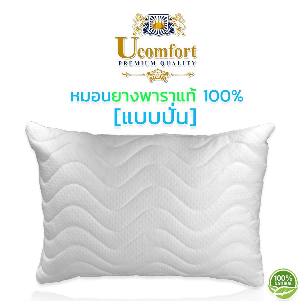 UCOMFORT หมอนยางพาราปั่น100% ใบใหญ่ หุ้มปลอกด้วยผ้าขนนก