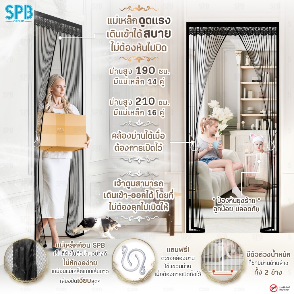 SPB ม่านแม่เหล็กกันยุง รุ่นพรีเมียม (กว้าง-สูง หลายขนาด) สีดำ ติดง่าย กันแมลง แถมฟรี ตีนตุ๊กแก