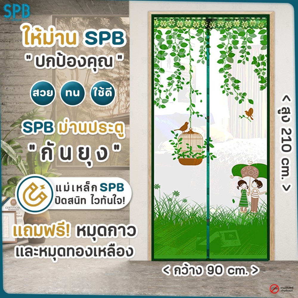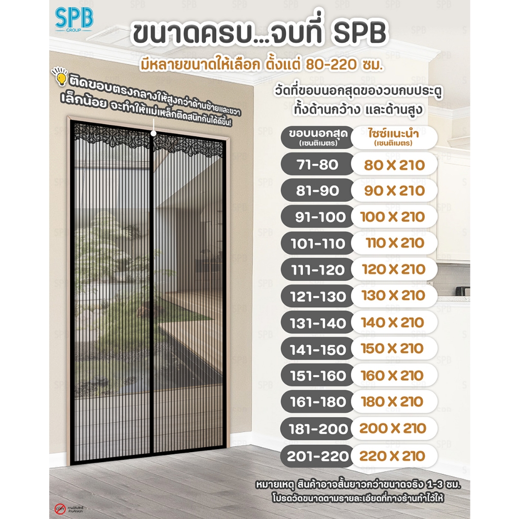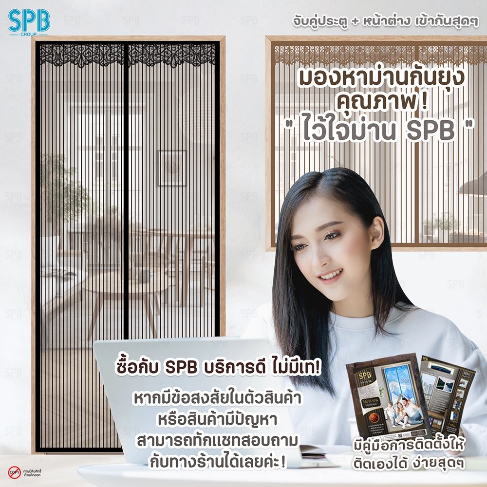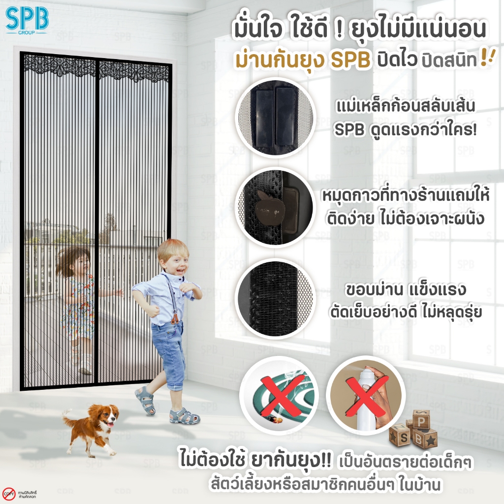 SPB ม่านแม่เหล็กกันยุง ( 80-120 x 210 ) สีดำ ติดเองง่ายๆ กันแมลง ฟรี หมุดกาวสำหรับติดตั้ง