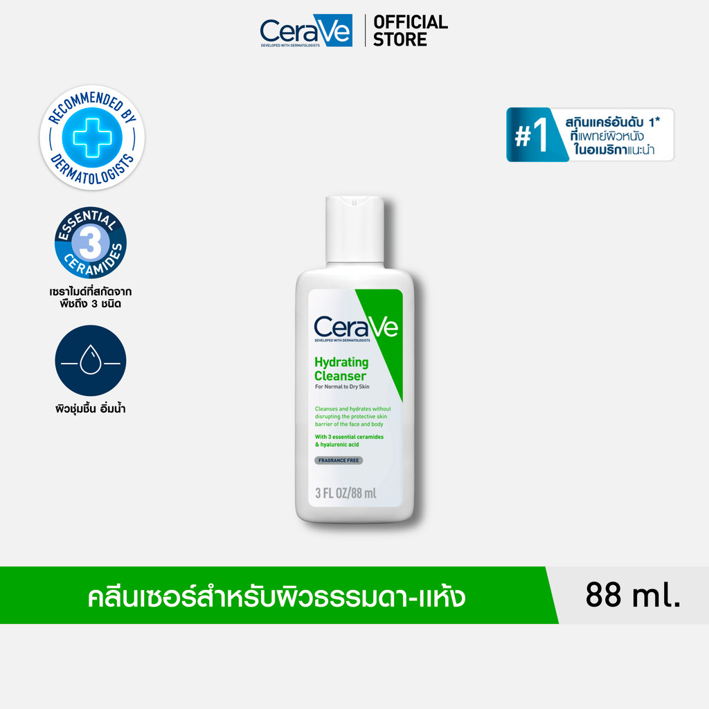 เซราวี CERAVE Hydrating Cleanser ทำความสะอาดผิวหน้าและผิวกาย สำหรับผิวแห้ง 88ml.