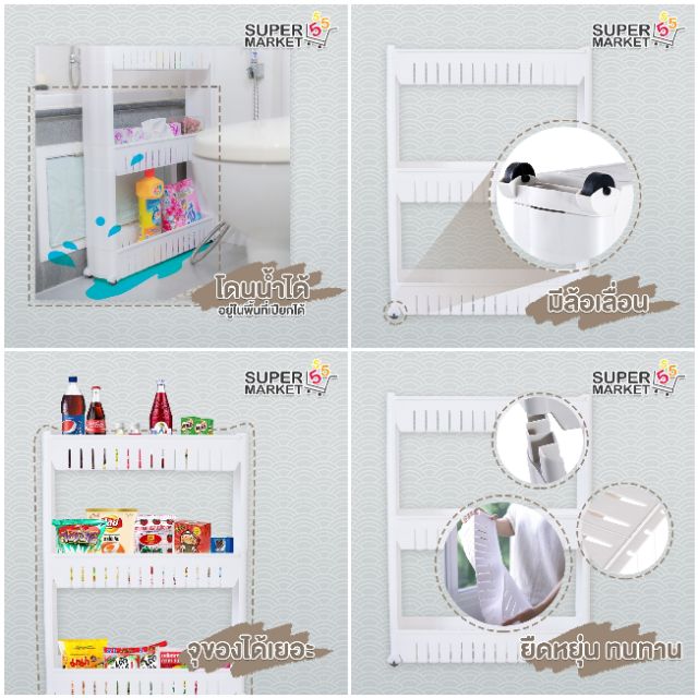 [ ชั้นแคบ ] ที่วางของในที่แคบ มีล้อเลื่อน เคลื่อนย้ายสะดวก ทำจาก พลาสติก pp มีแบบ 3 ชั้นและ 4 ชั้น