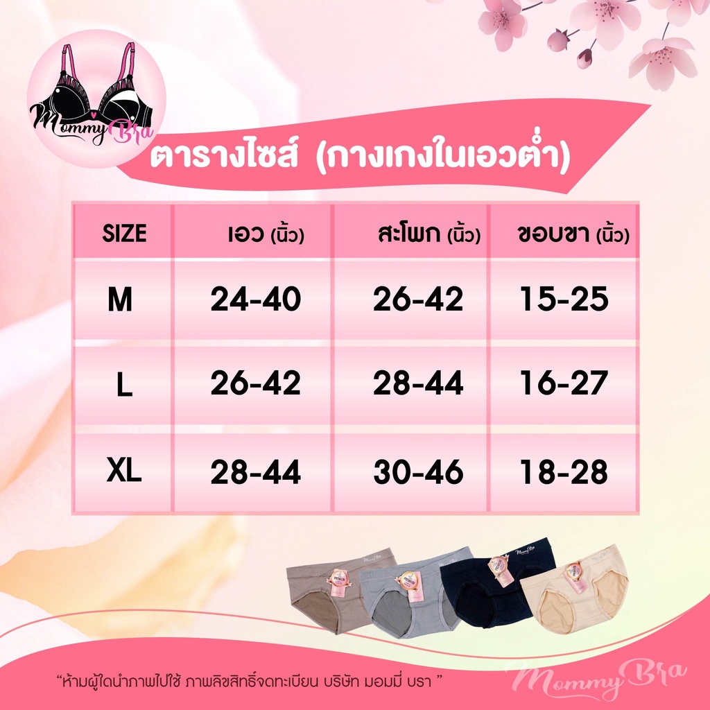 UW-02 🔥สินค้ามาใหม่🔥 กางเกงในคนท้องเอวต่ำ (เนื้อผ้าสเปนเด็ก+ไนล่อน) 👙รุ่นเข้าชุดกับเสื้อในรหัส BR02 พร้อมส่ง 4 สี
